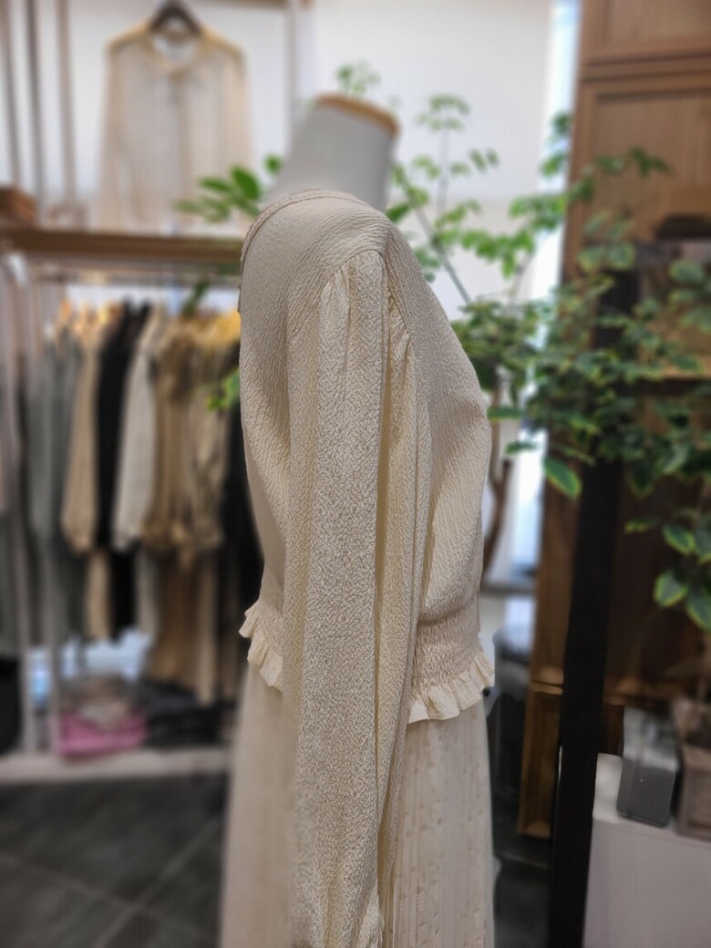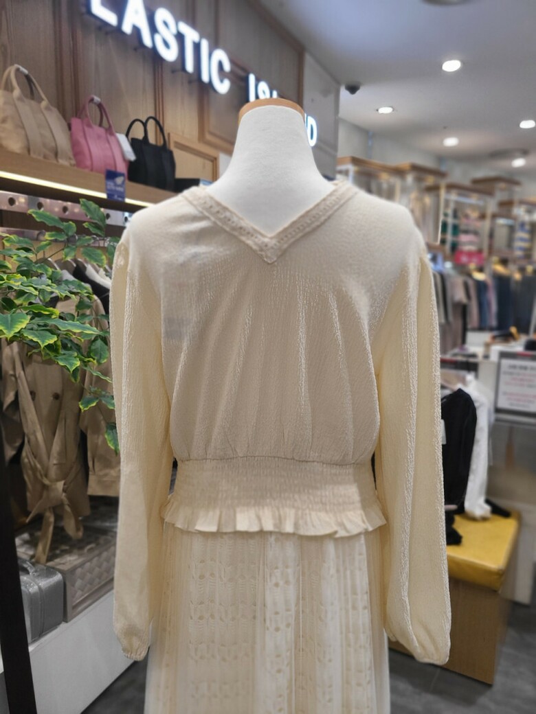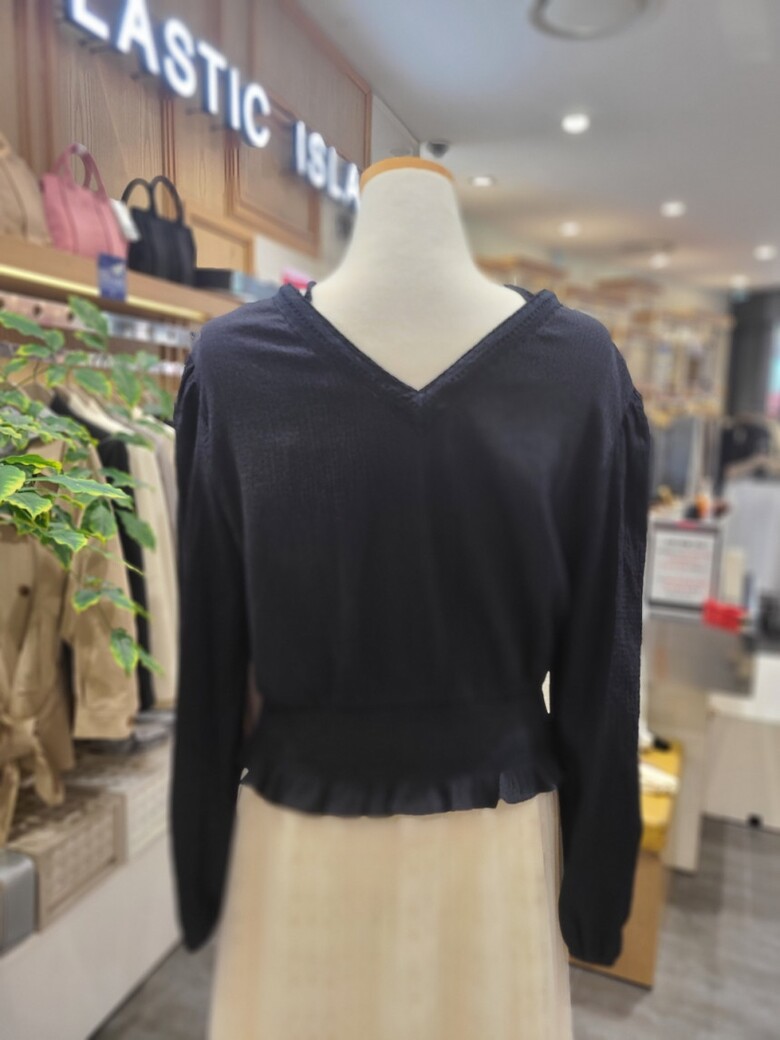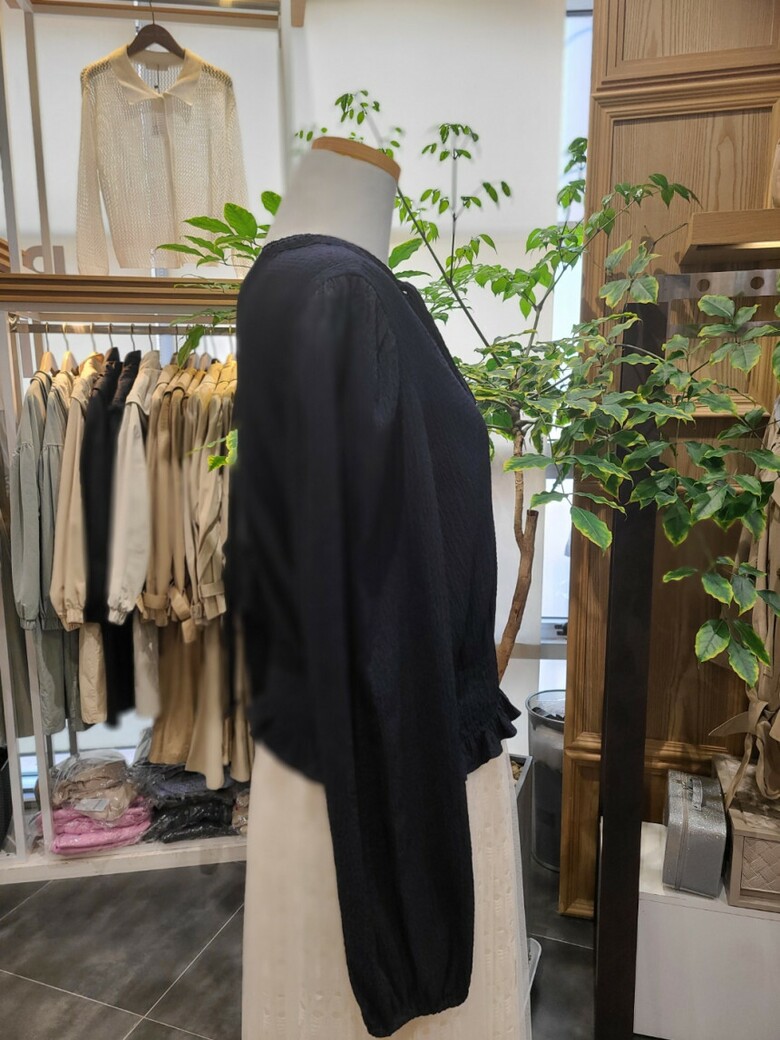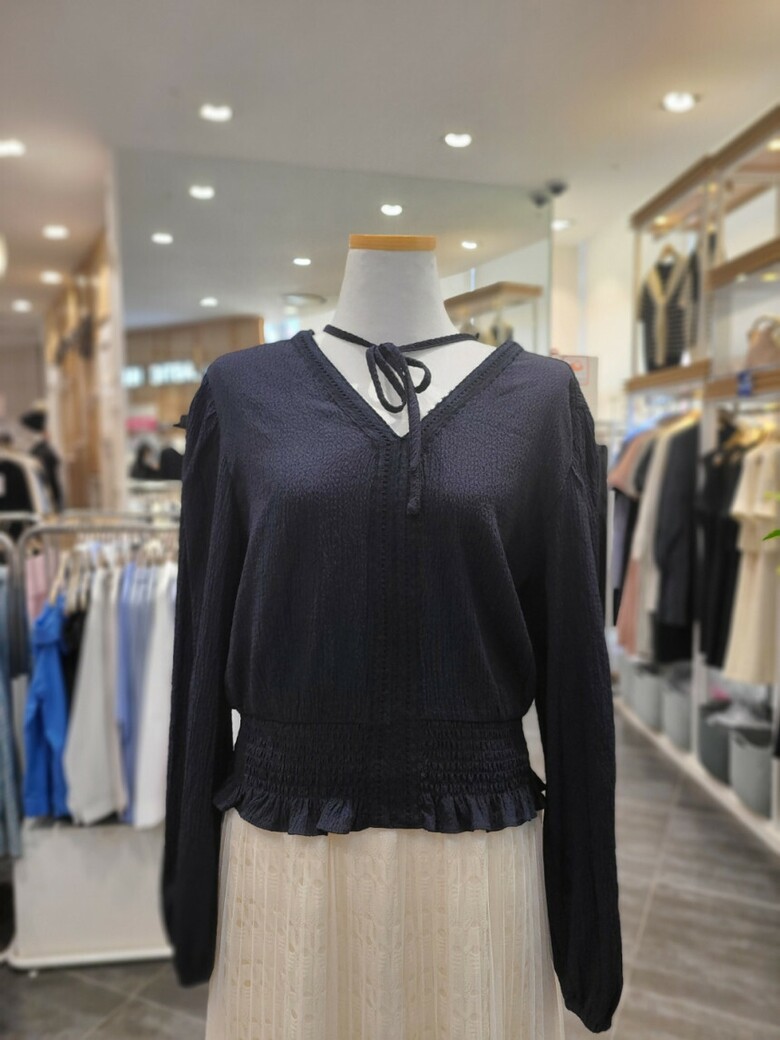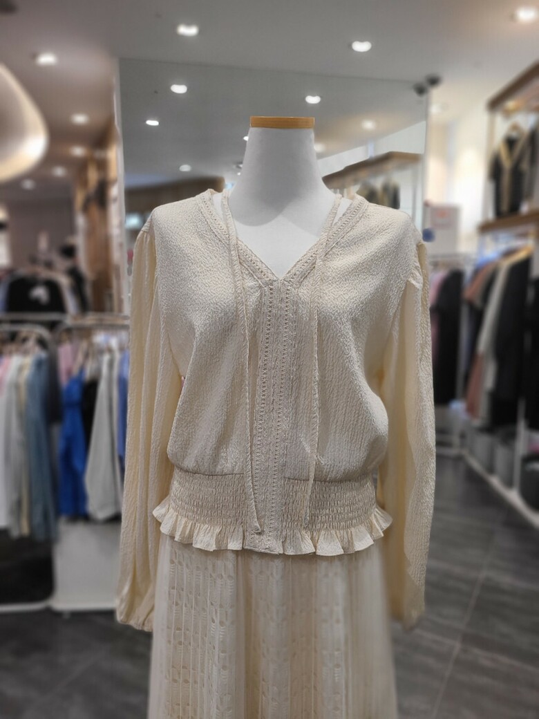 플라스틱아일랜드 레이스V넥스모킹블라우스PR2WB882