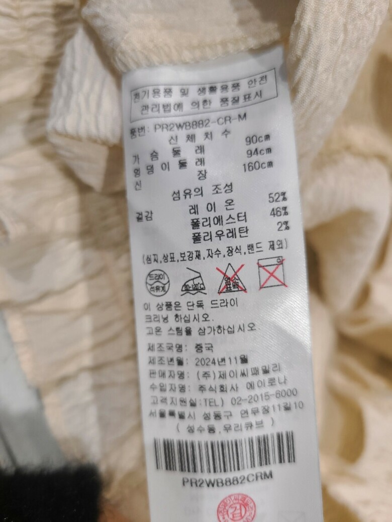 | 1. 제품 소재 (섬유의 조성 또는 혼용률을 백분율로 표시, 기능성인 경우 성적서 또는 허가서) | 레이온 52%, 폴리에스테르 46%, 폴리우레탄 2% |