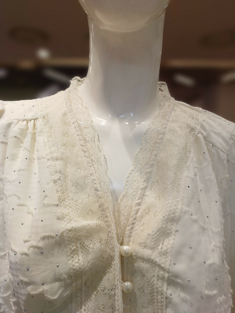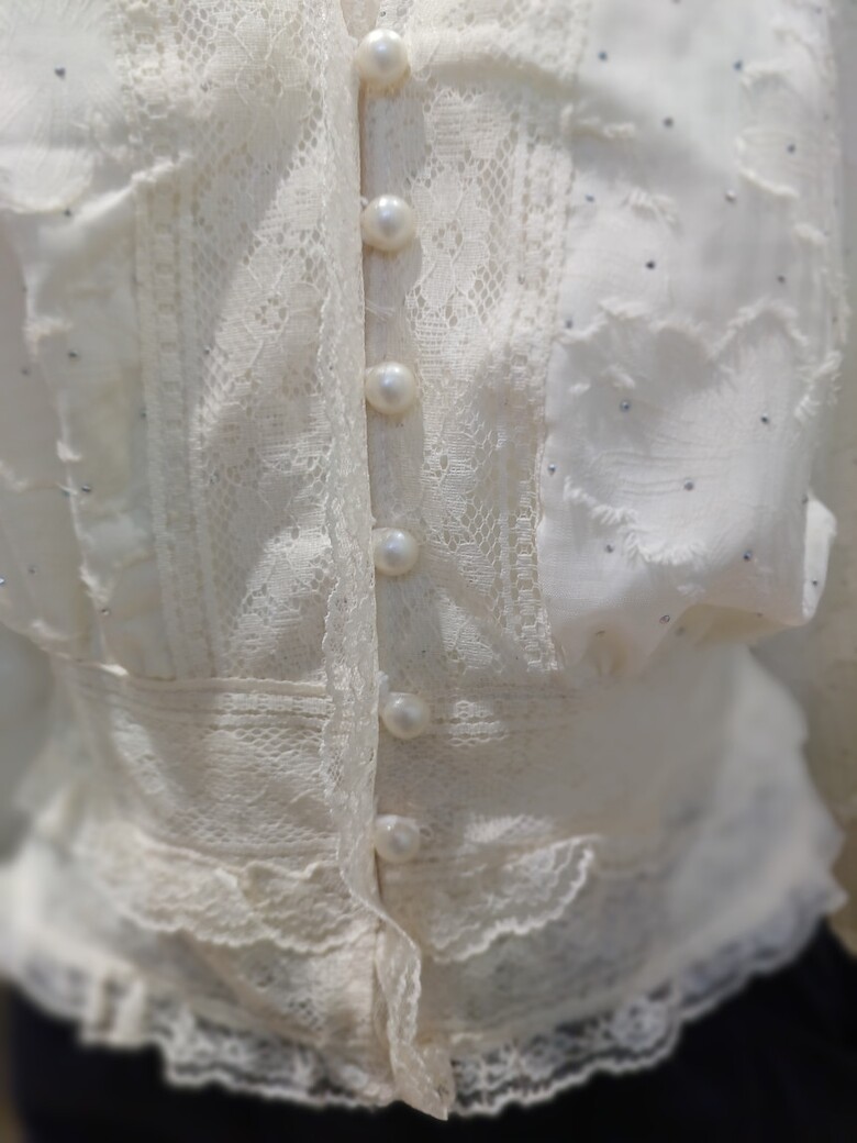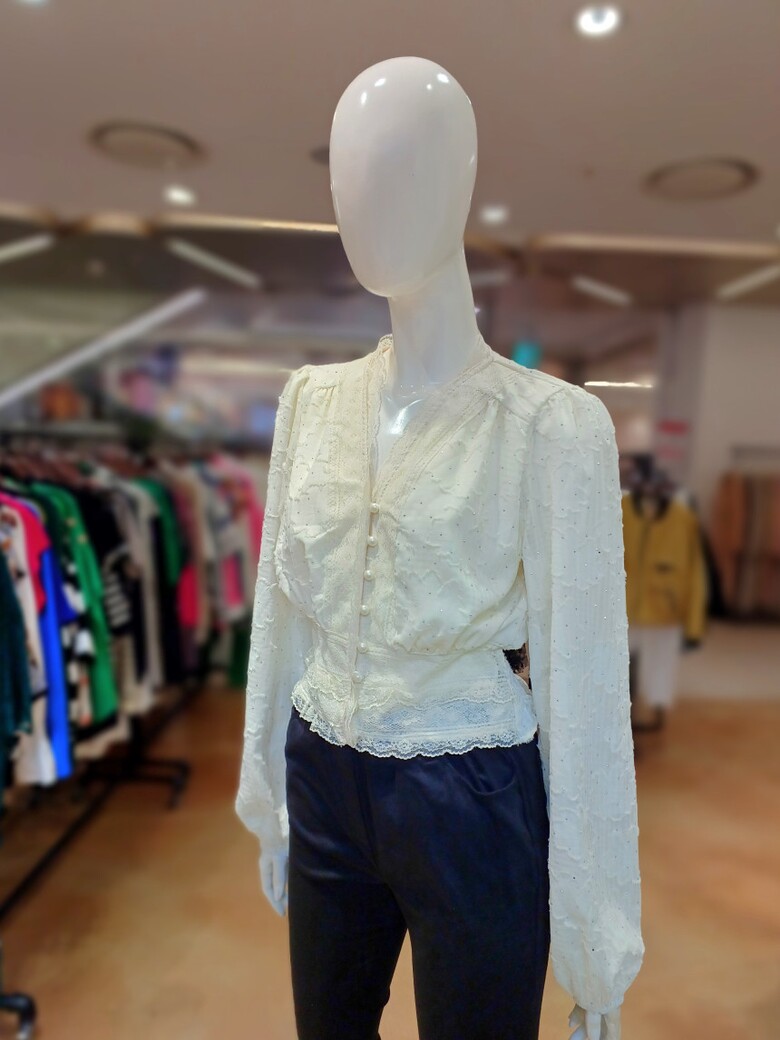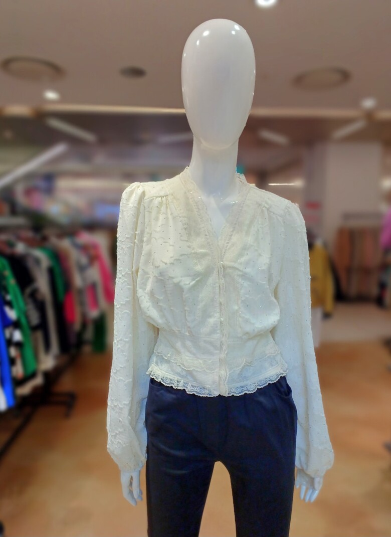 브이넥 레이스 단추가 포인트인 블라우스입니다