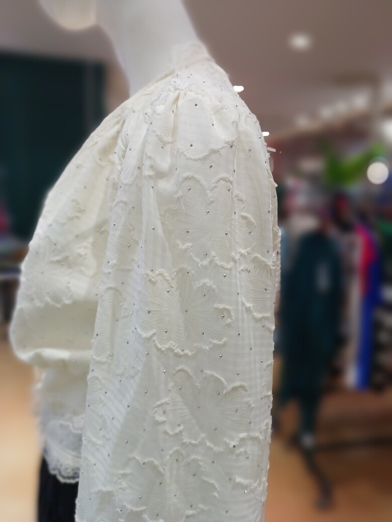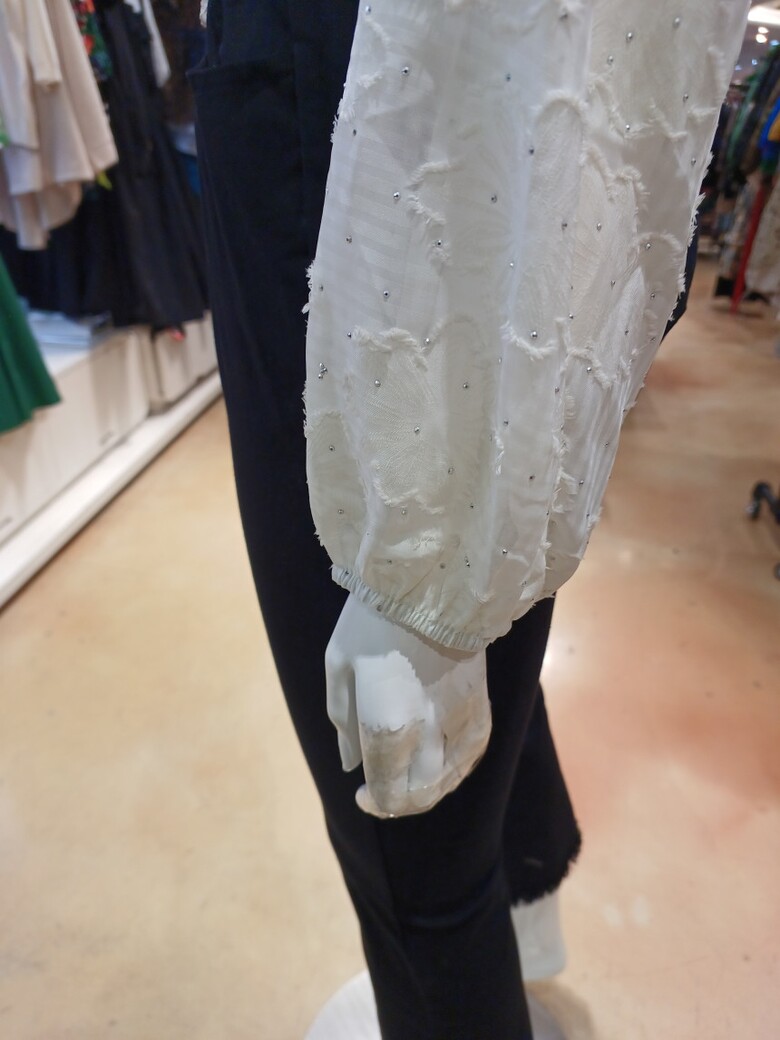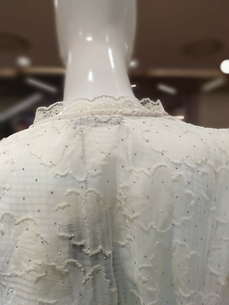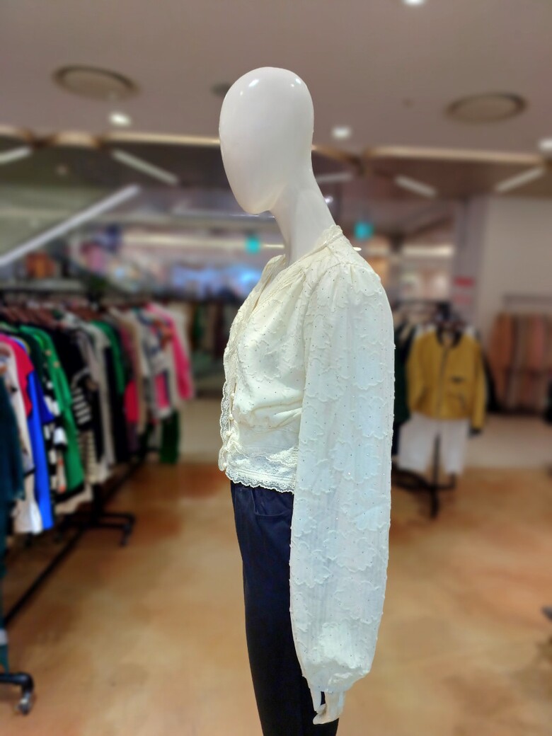 브이넥 레이스 단추가 포인트인 블라우스입니다