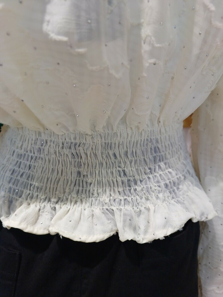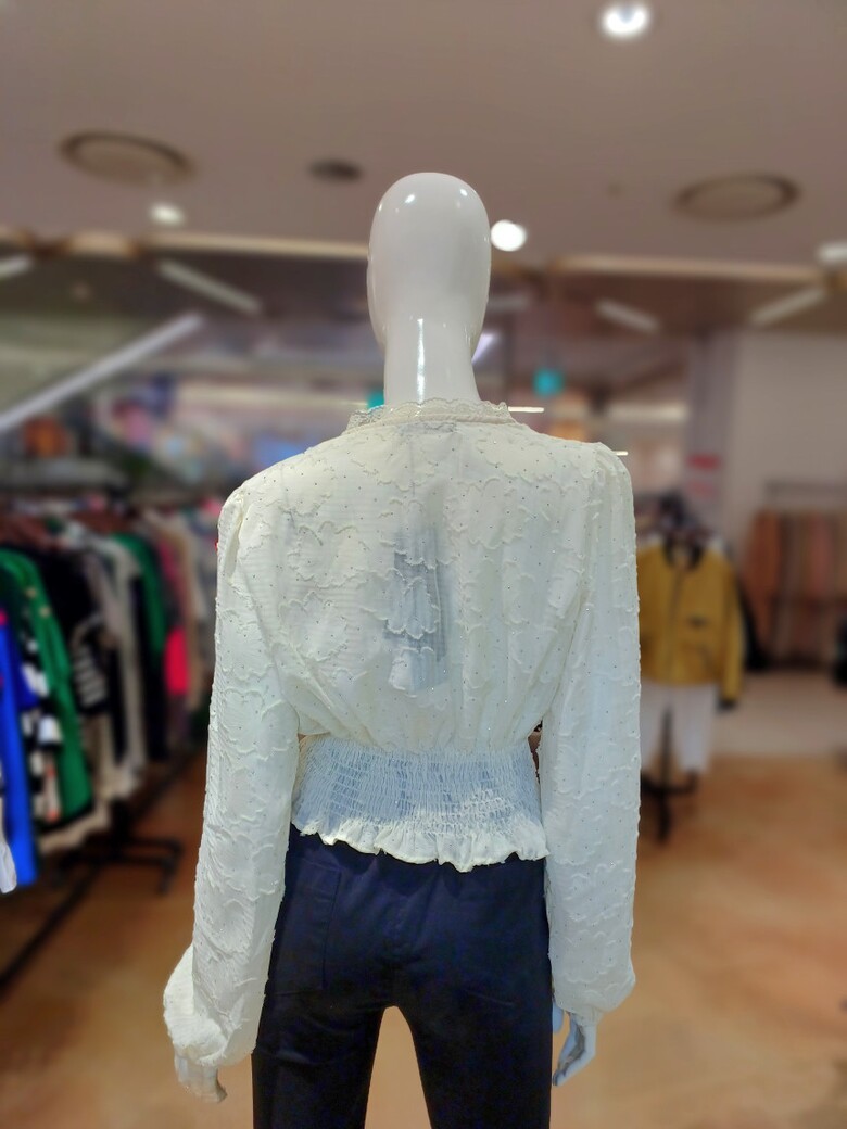르니앤맥코이 크롭 브이넥 레이스 허리밴딩 블라우스MM05BL300