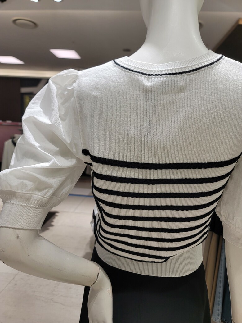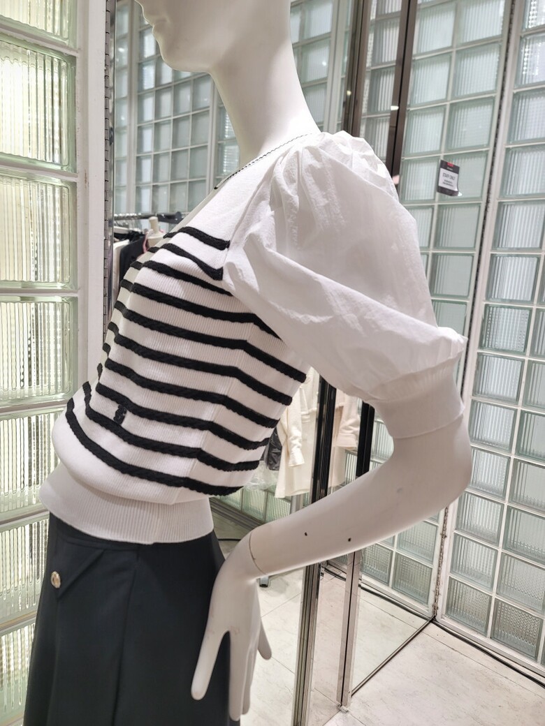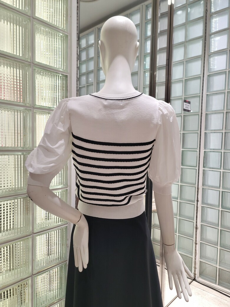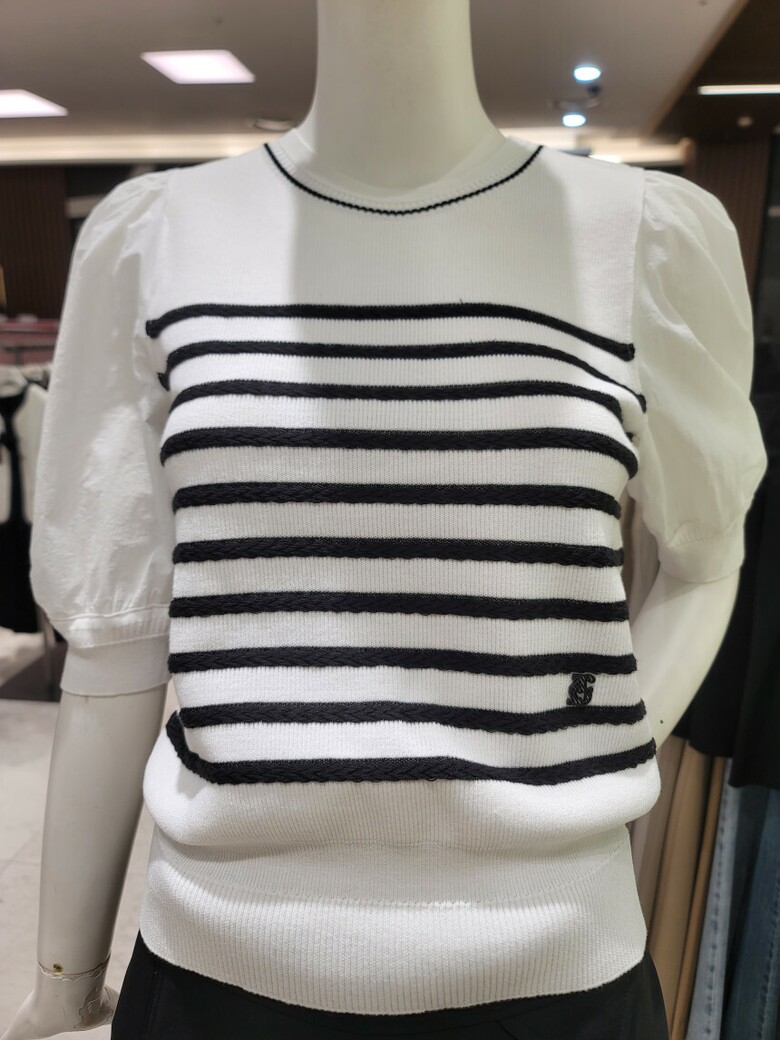 Z00C 퍼프 소매 스트라이프 니트 Z242KSK016