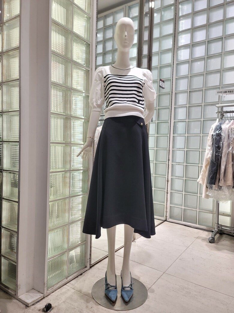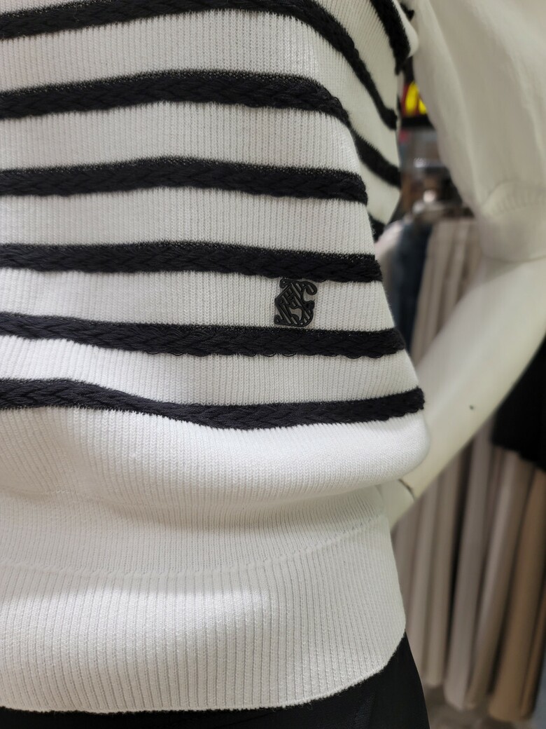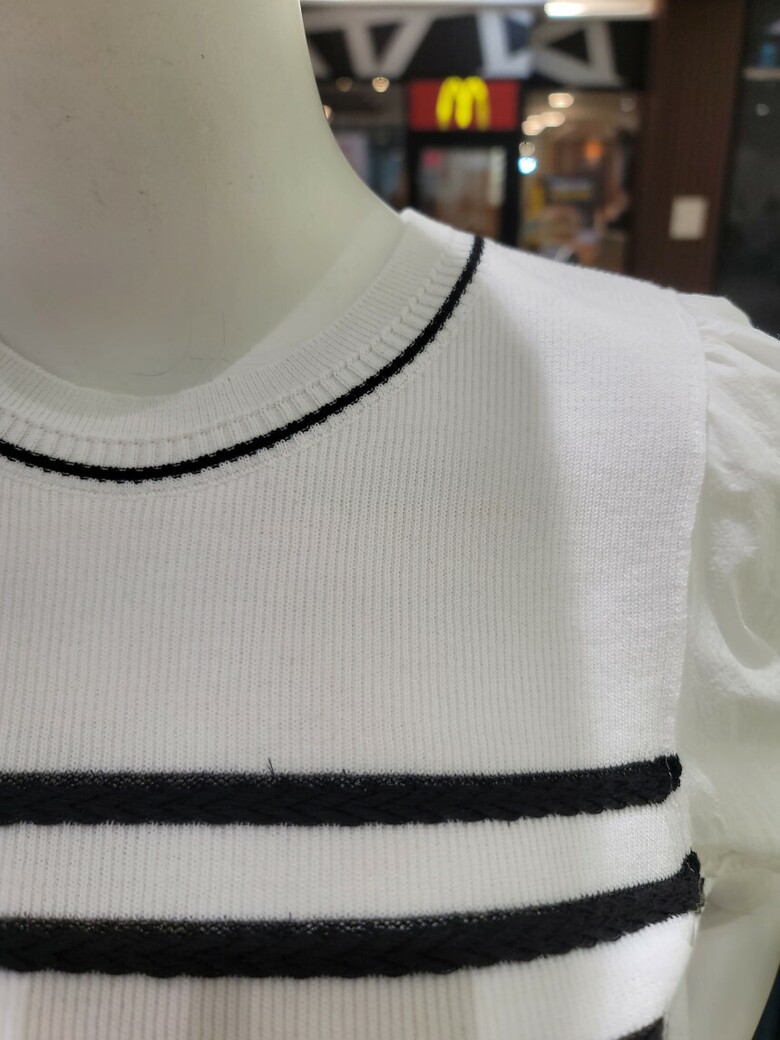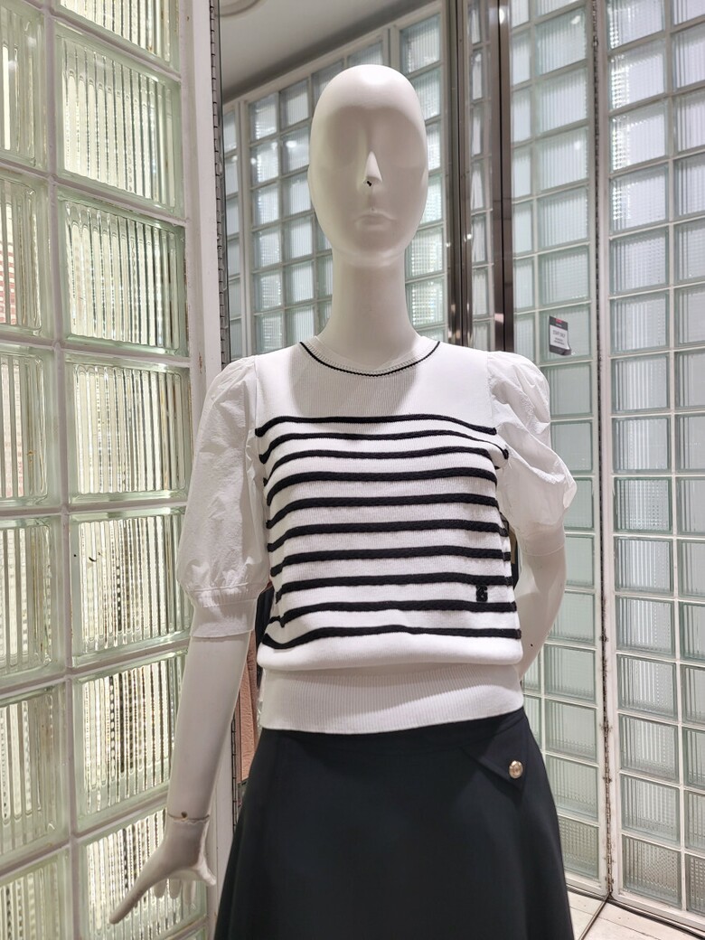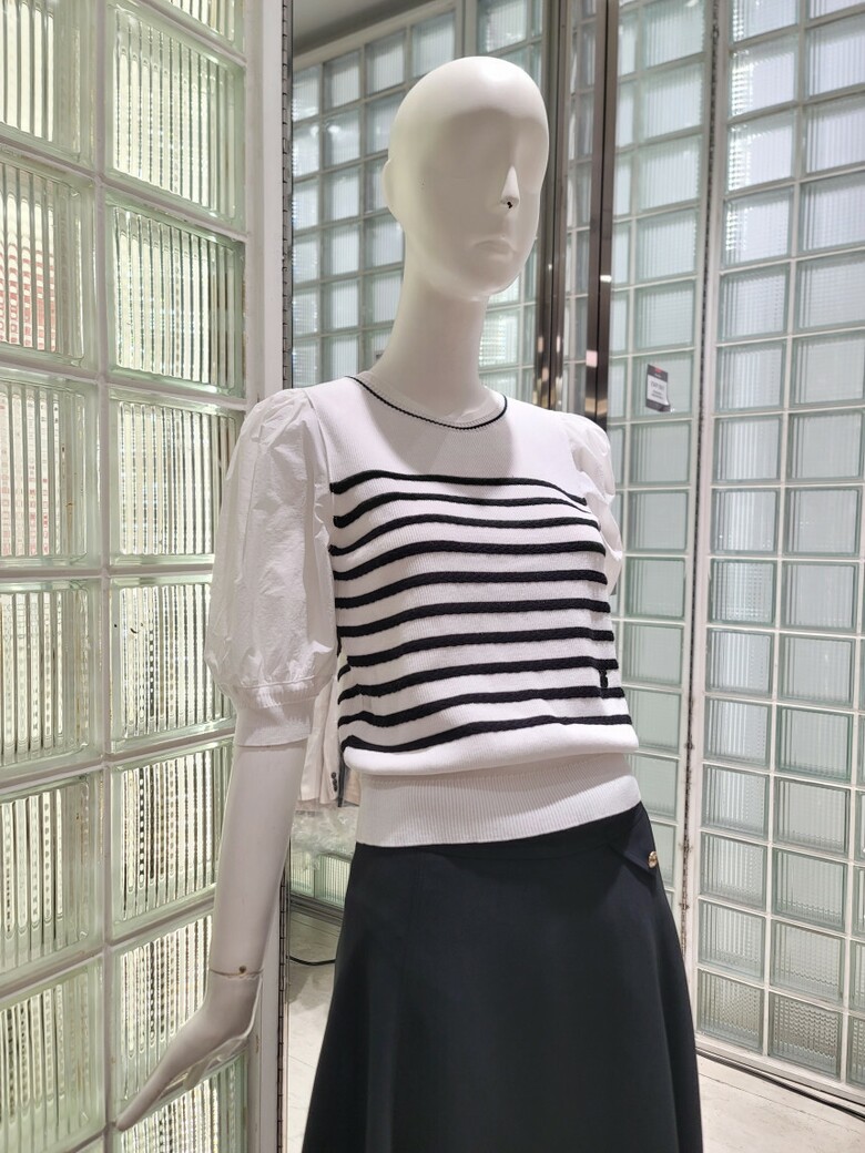 Z00C 퍼프 소매 스트라이프 니트 Z242KSK016