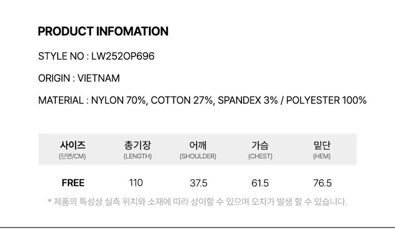 | 6. 세탁방법 및 취급시 주의사항 | 상품상세참조 |