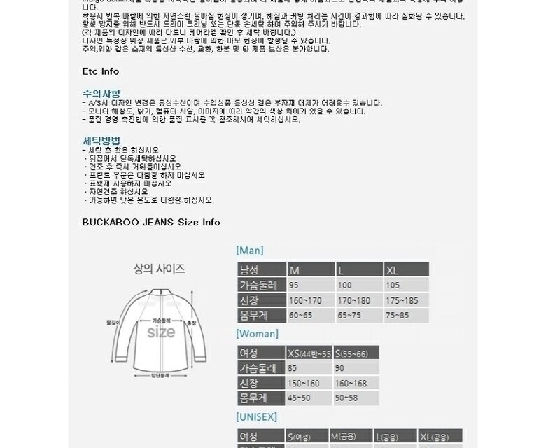 6. 세탁방법 및 취급시 주의사항 | 단독 드라이크리닝 또는 케어라벨 참조 |