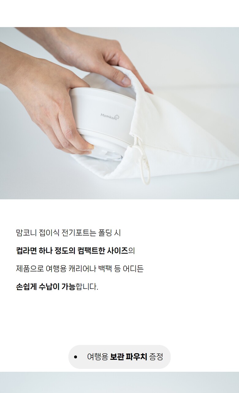 [맘코니] 접이식 전기포트 휴대용 여행용 해외 캠핑 커피 분유 미니 햇반
