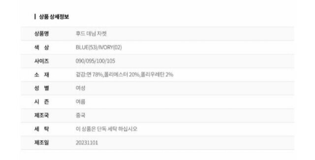 | 1. 제품 소재 (섬유의 조성 또는 혼용률을 백분율로 표시, 기능성인 경우 성적서 또는 허가서) | 상품상세참조 |