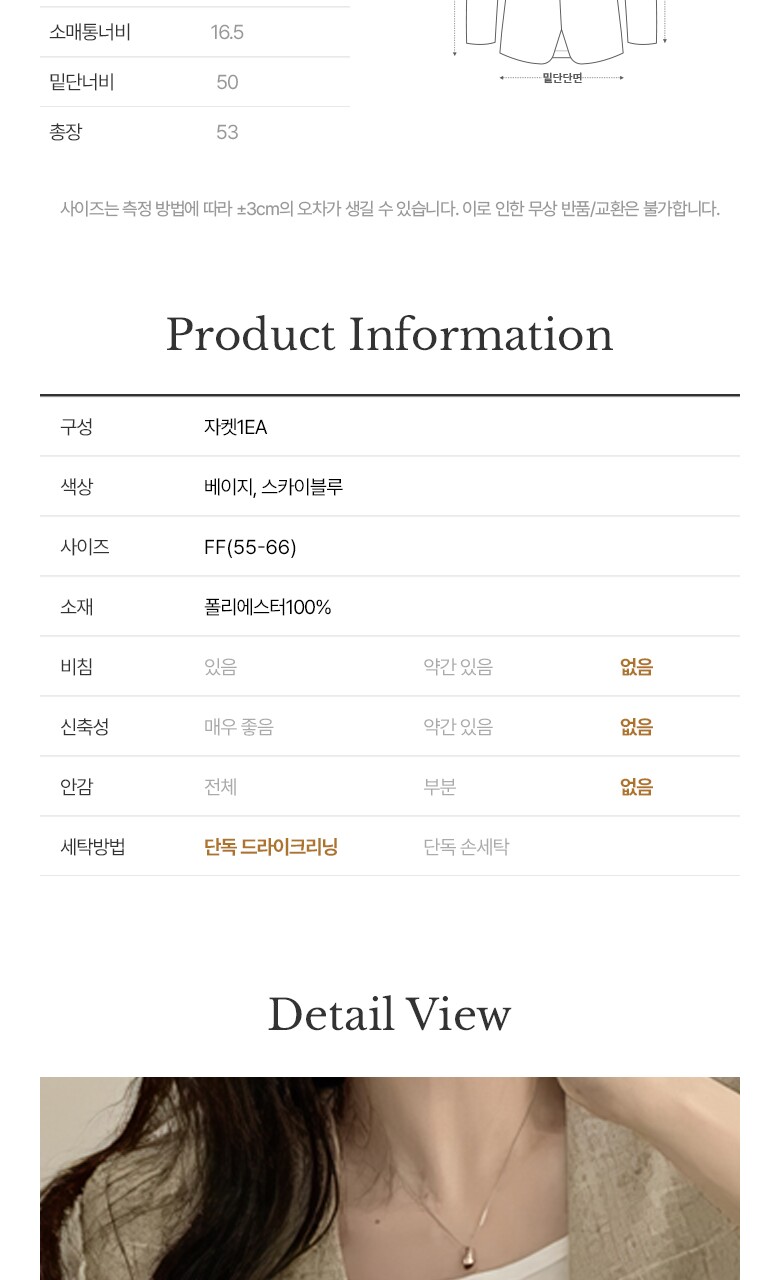 1. 제품 소재 (섬유의 조성 또는 혼용률을 백분율로 표시, 기능성인 경우 성적서 또는 허가서) | 폴리에스터100% |
