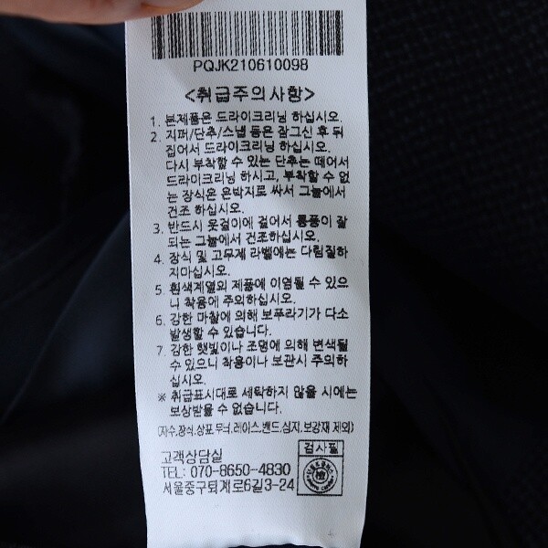 세탁방법 및 취급시 주의사항 : 본 상품 케어라벨 참조