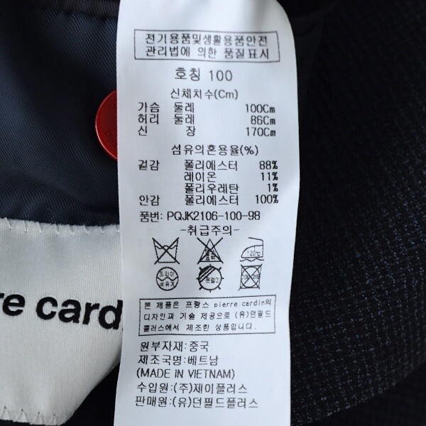 제품소재 : 겉감 - 폴리에스터 88%, 레이온 11%, 폴리우레탄 1%안감 - 폴리에스터 100%