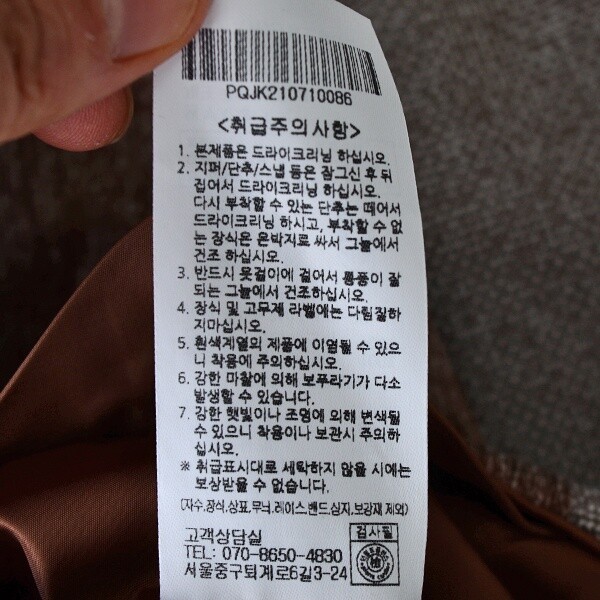 세탁방법 및 취급시 주의사항 : 본 상품 케어라벨 참조