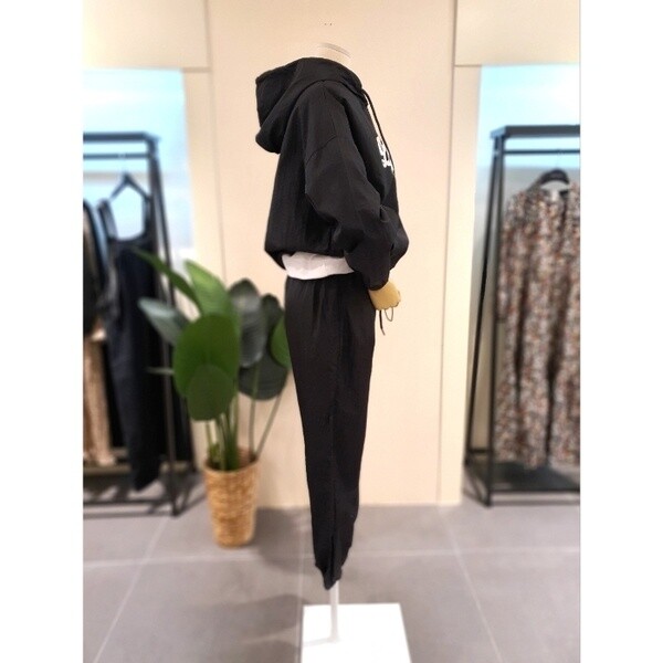 가볍고 얇은 홑겹으로 시원하고 멋스럽습니다.상의 후드 여유있는 사이즈로 편안하게 착용 가능합니다.밑단 중앙에 스트링이 있어 핏 조절이 가능합니다.스트링을 조이지 않고 착용하면 엉덩이 윗부분을 가리는 기장입니다.하의 주머니 있으며 편안하게 착용하기 좋은 조거팬츠입니다.