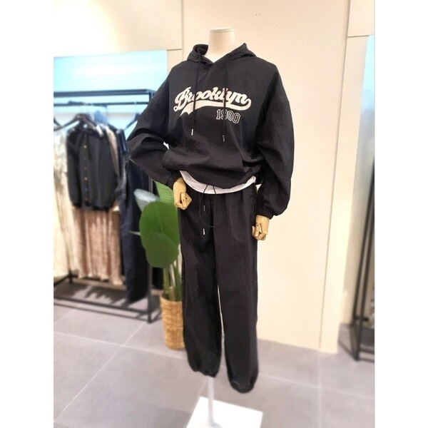 STP306BK_바스락 1980 후드 조거 세트 블랙