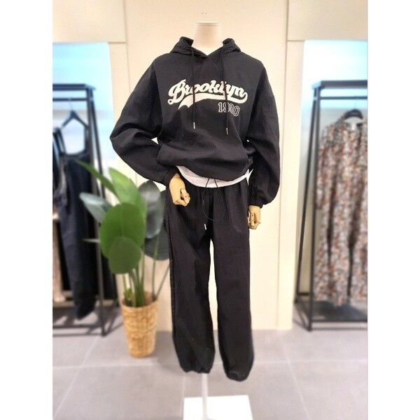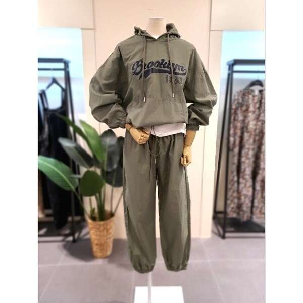 바스락 바람막이 원단의 후드조거팬츠 세트입니다.