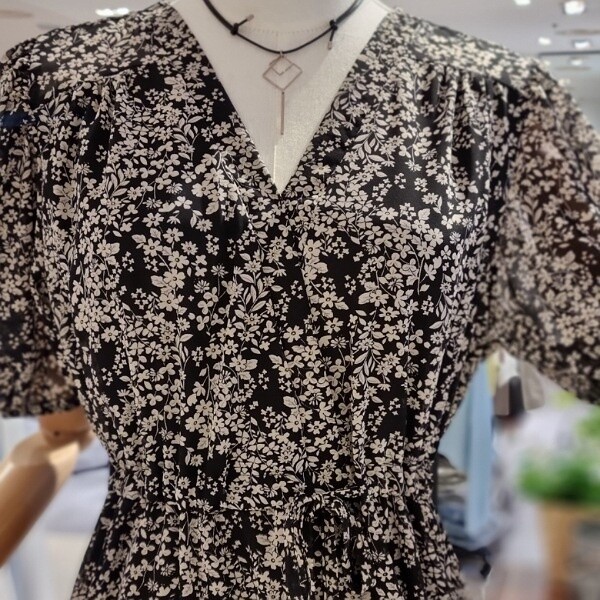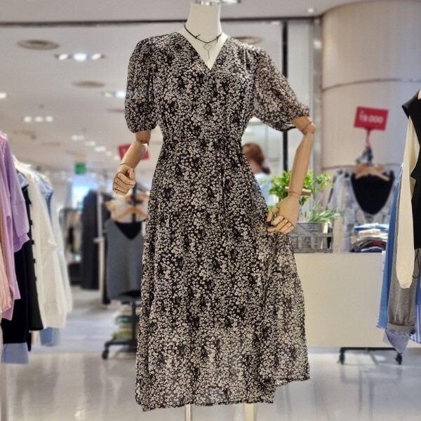 2단 셔 링디자인 허리끈 셔링으로 슬림함 연출 브이넥 원피스