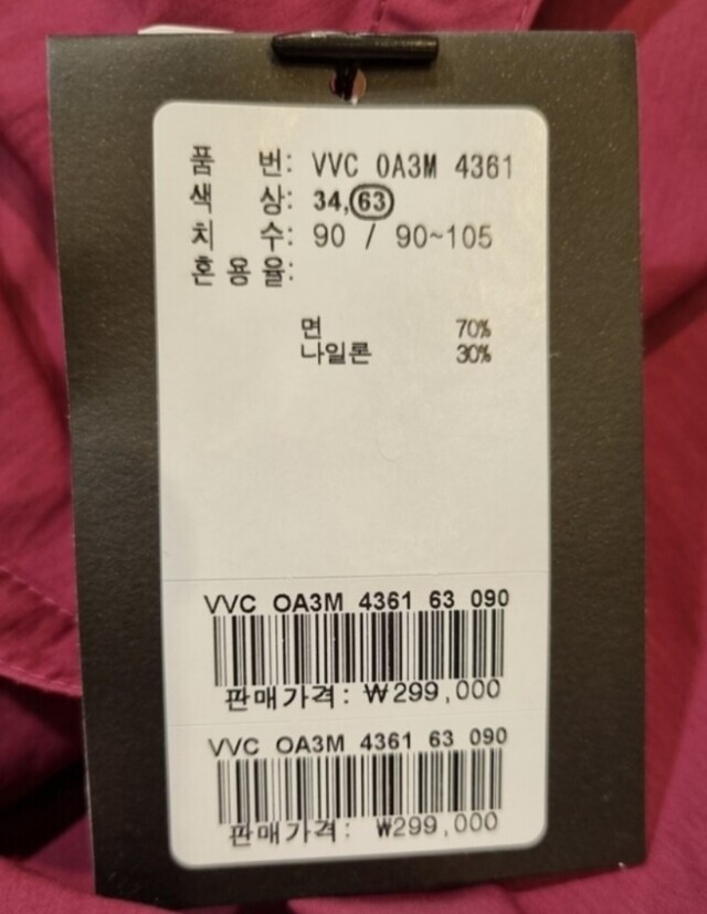 | 6. 세탁방법 및 취급시 주의사항 | 상품상세참조 |