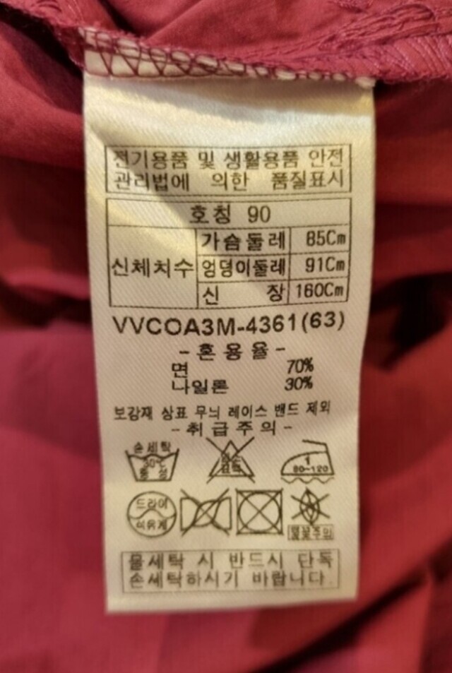 90 - 총장 120 가슴둘레 100 허리둘레 97 엉덩이둘레 112 밑단둘레 118 화장 29