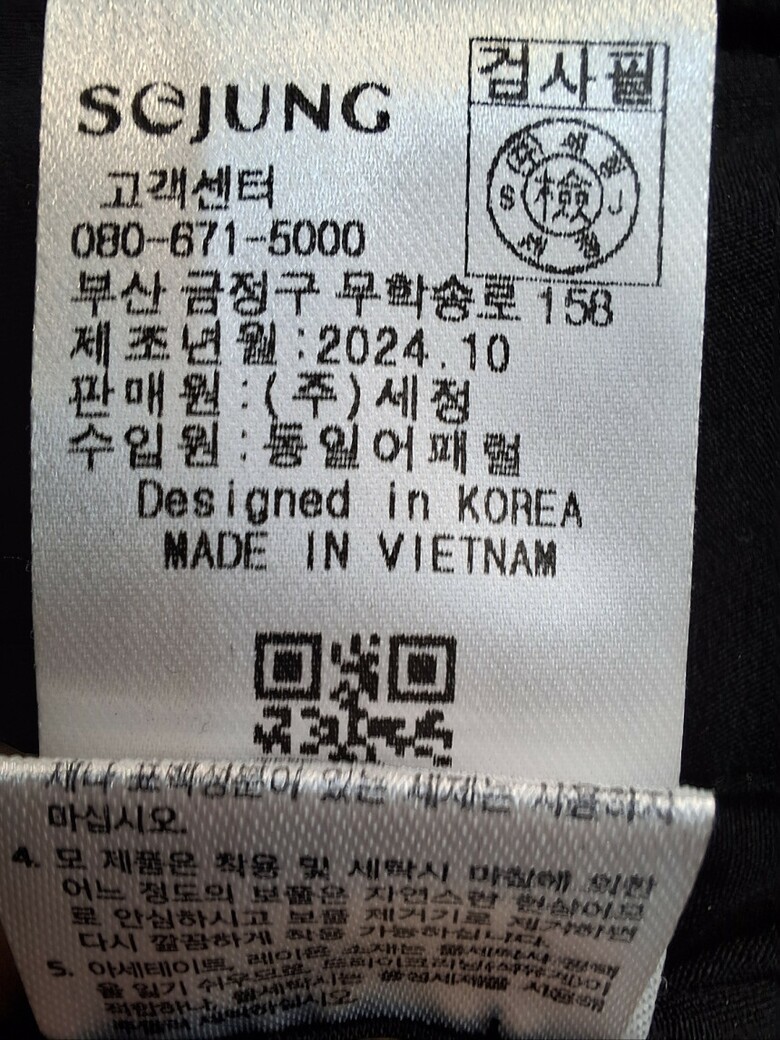 | 1. 제품 소재 (섬유의 조성 또는 혼용률을 백분율로 표시, 기능성인 경우 성적서 또는 허가서) | 겉감:폴리에스테르 94%, 마 4%, 폴리우레탄 2% / 안감:폴리에스테르 |