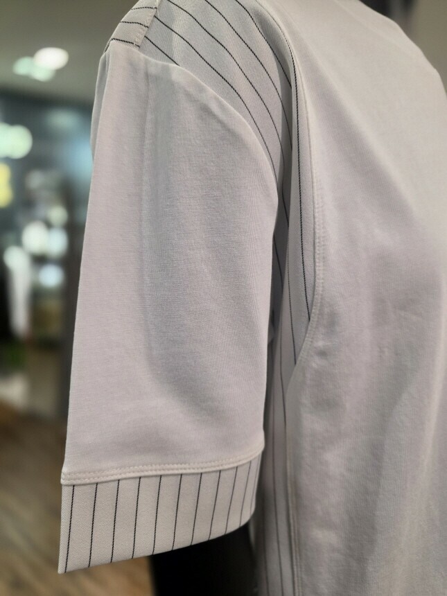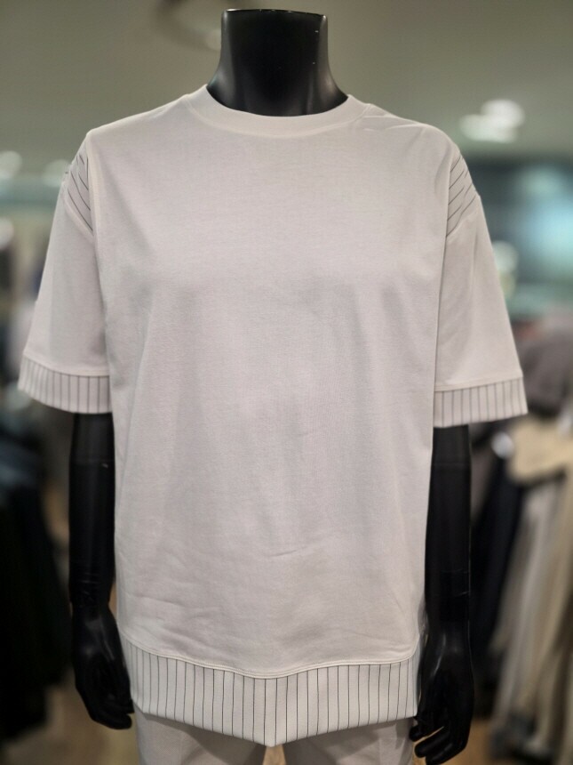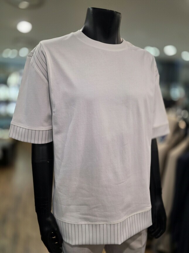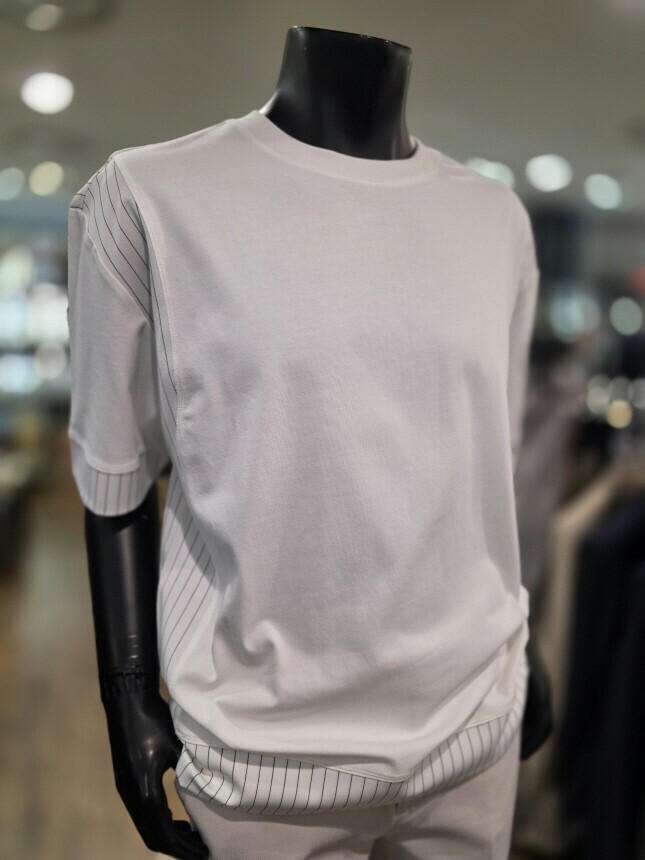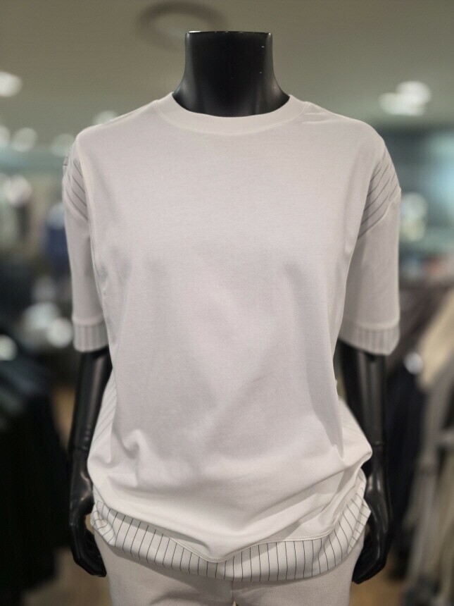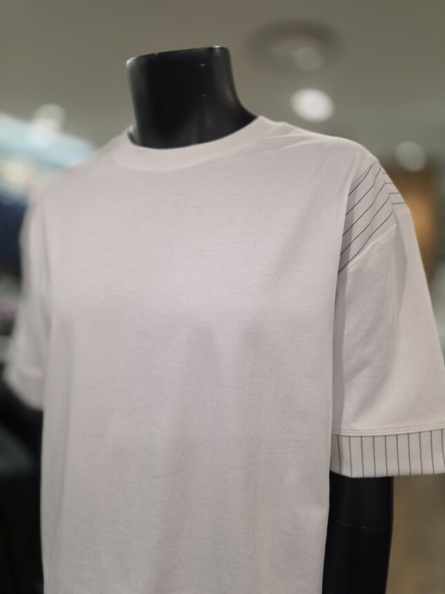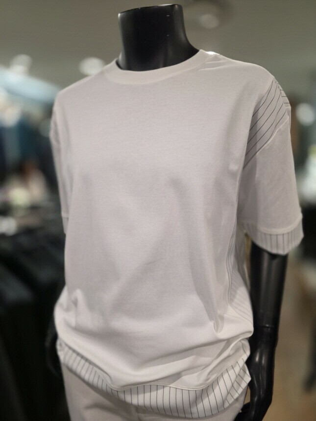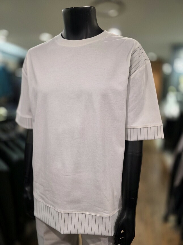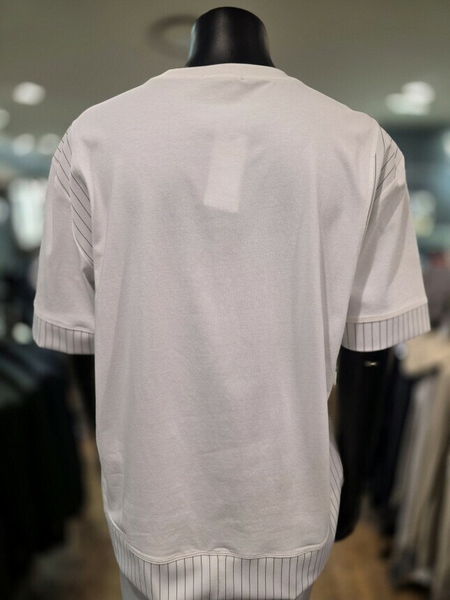 [바쏘옴므] Z2KR32A S/S 화이트 사이드 포인트 배색 오버핏 반소매 티셔츠