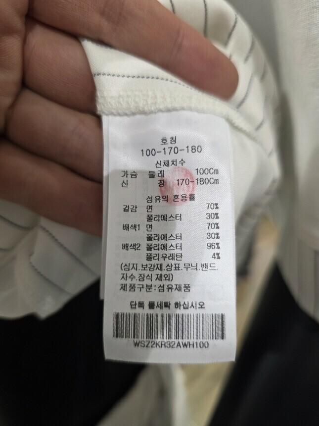 | 1. 제품 소재 (섬유의 조성 또는 혼용률을 백분율로 표시, 기능성인 경우 성적서 또는 허가서) | 겉감 : 면 70% , 폴리에스터 30% 배색1 : 면 70% , 폴리에스터 30% |