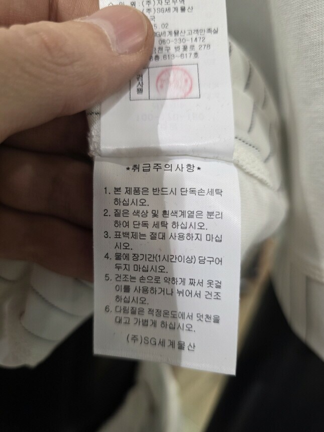 | 6. 세탁방법 및 취급시 주의사항 | 단독 물세탁 하십시오 |