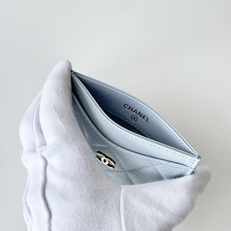 [명품] 샤넬 클래식 카드홀더 캐비어 하늘색 금장 AP0213