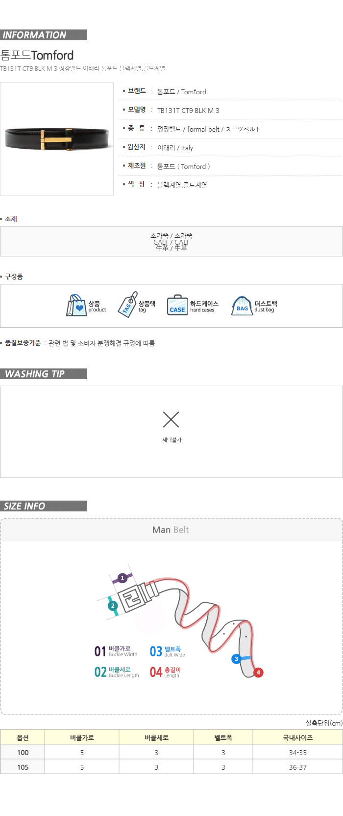 [명품] 톰포드 T버클 아이콘 금장 레더 벨트 TB131T
