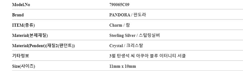 [명품] 판도라 790065C09 탄생석 씨 아쿠아 블루 이터니티 서클 실버 참