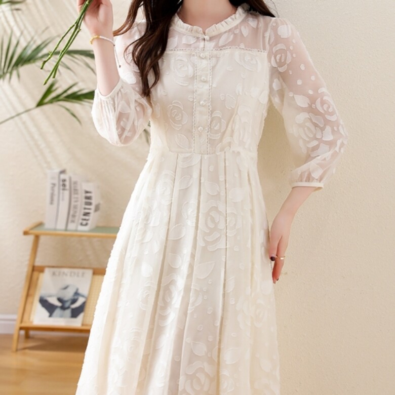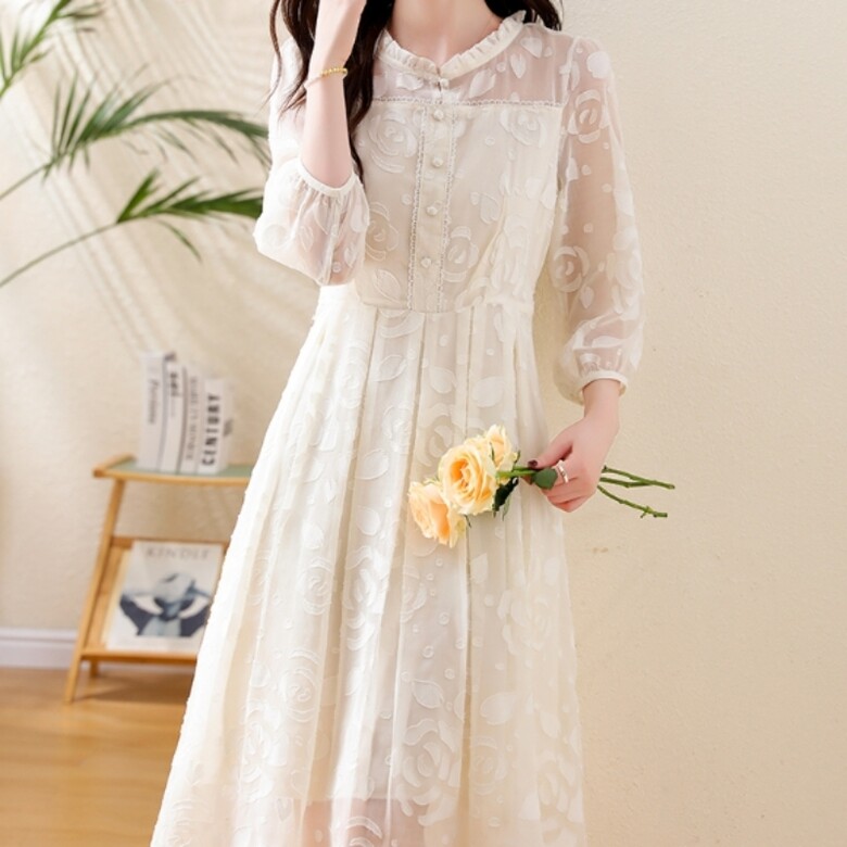 플라워 자수 레이스 미디엄 원피스_250405_SY22