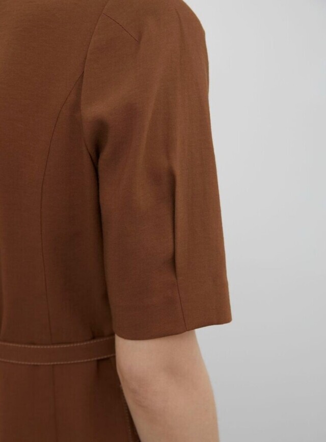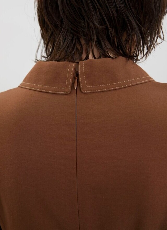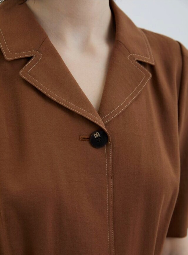 앰블럼 원 버튼과 배색 스티치로 포인트를 준 H라인