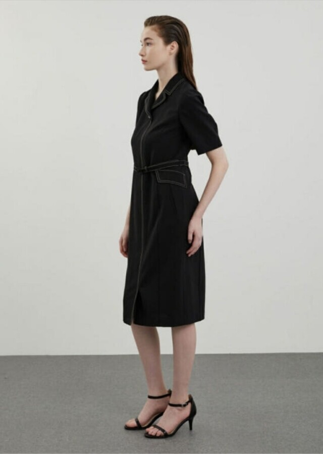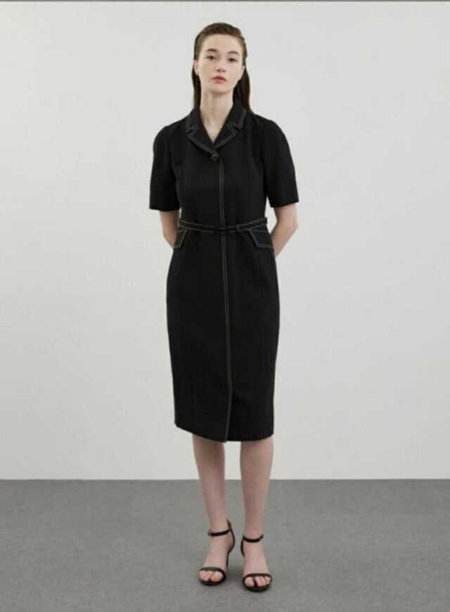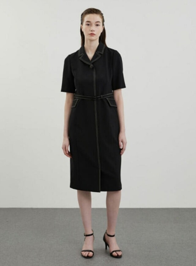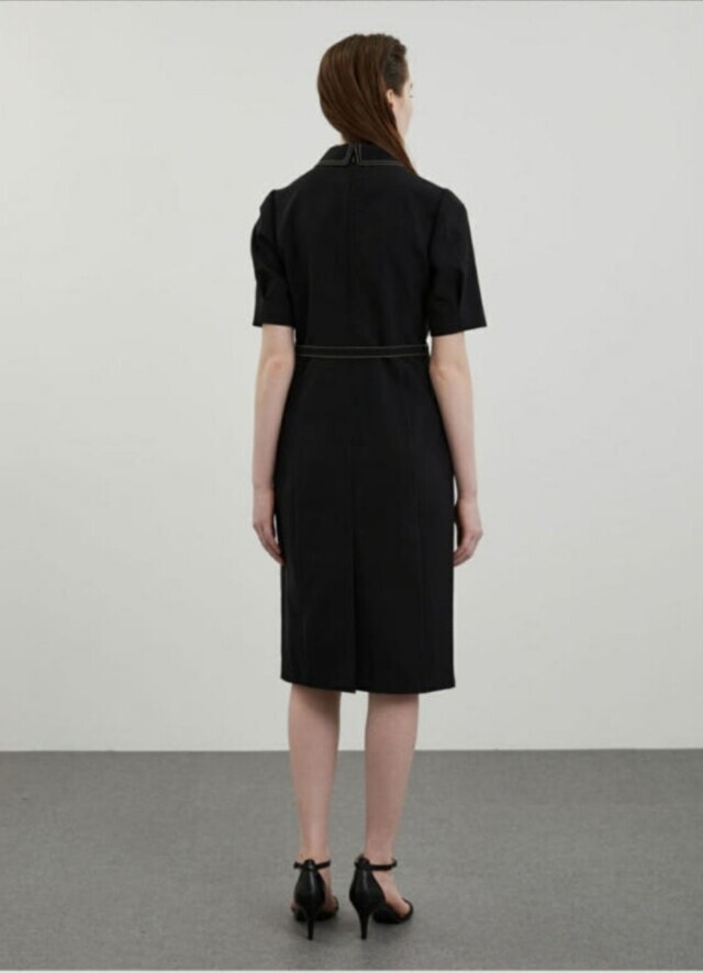 [올리비아로렌]배색 스티치 H라인 원피스VOCOA4M4321
