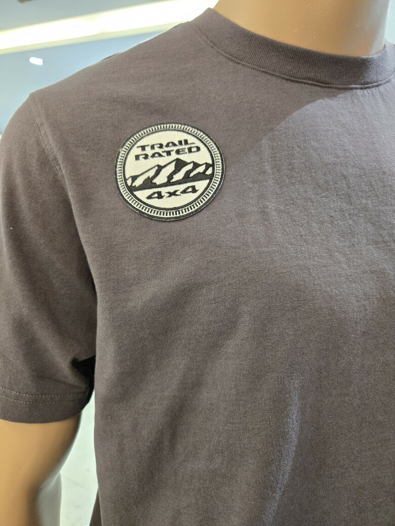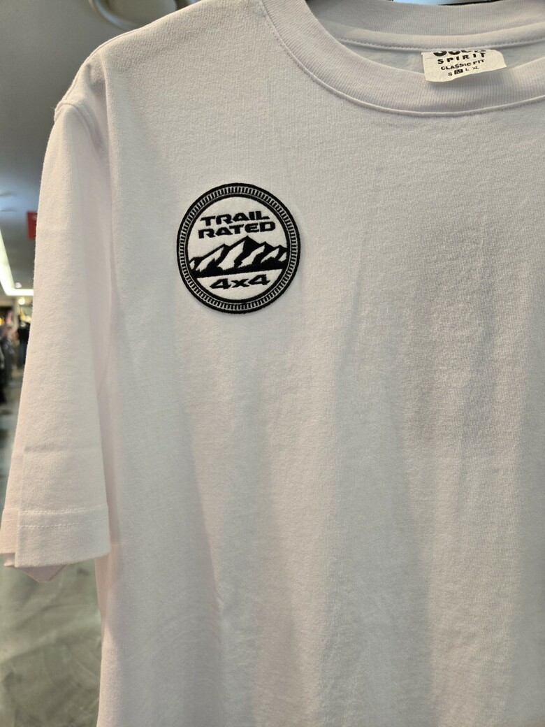 지프 감성을 살린 와펜을 패치한 빈티지 무드의 클래식 핏 반팔티입니다.