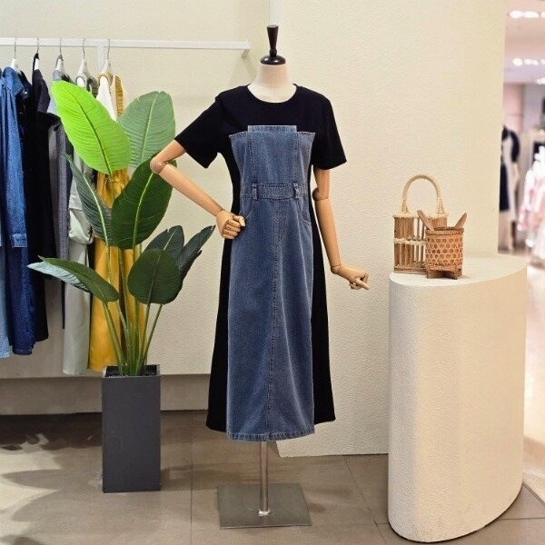 FM5D9OP5151_사선 페이크 데님 원피스