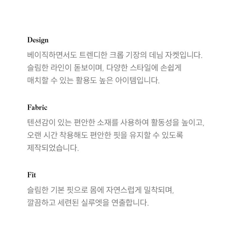 | 1. 제품 소재 (섬유의 조성 또는 혼용률을 백분율로 표시, 기능성인 경우 성적서 또는 허가서) | 상품상세참조 |