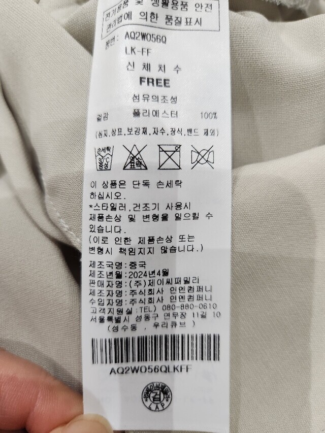 | 6. 세탁방법 및 취급시 주의사항 | 상품상세참조 |