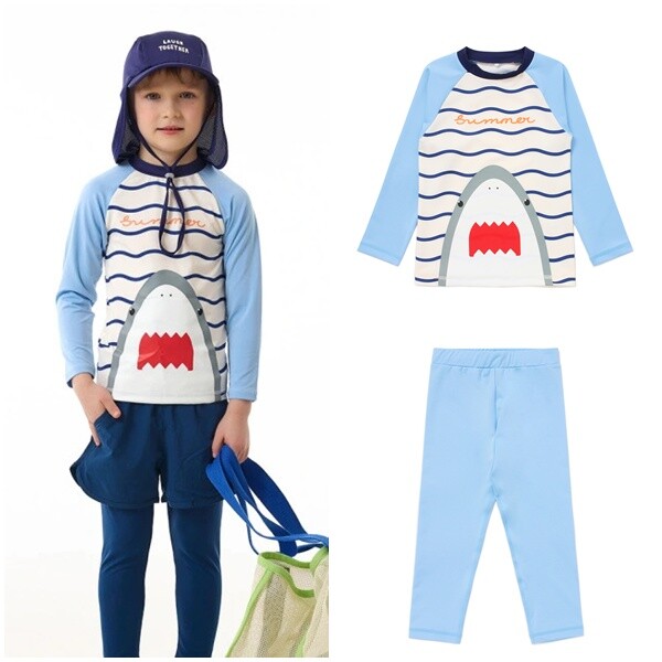 | 1. 제품 소재 (섬유의 조성 또는 혼용률을 백분율로 표시, 기능성인 경우 성적서 또는 허가서) | [래핑차일드]샤크 9부 래시가드 상하세트(85419-900-03) |