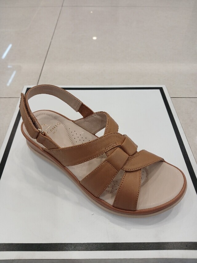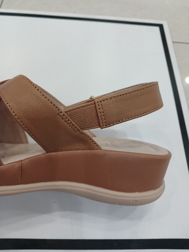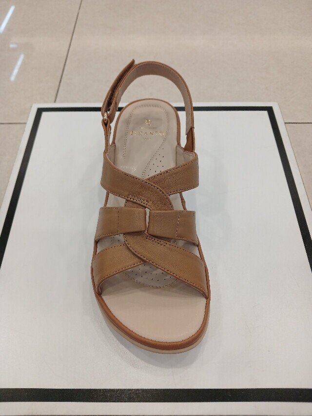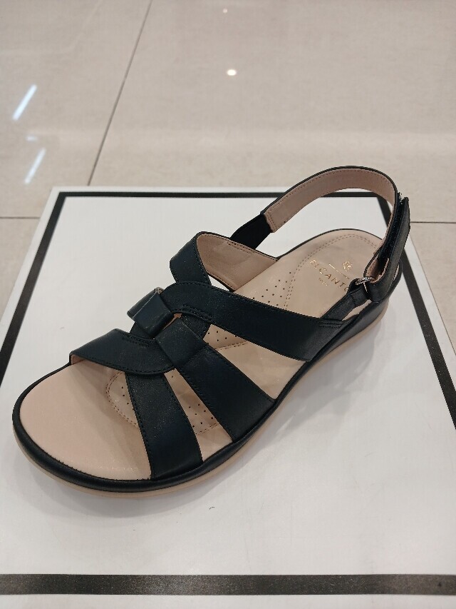 굽높이 약4cm의 높이에 천연양가죽 소재를 사용하여 제작된 여성 초경량 데일리 쿠셔닝 컴포트샌들입니다