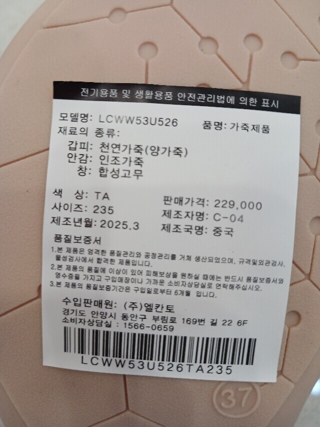 | 1. 제품 소재 (운동화인 경우에는 겉감, 안감을 구분하여 표시) | 상품상세참조 |