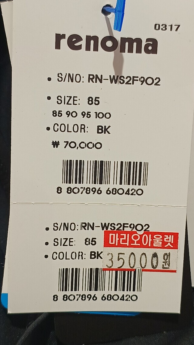 • 아울렛 상품의 특성 상 “택이 훼손”된 경우가 있으나 이는 불량이 아니며 무료 반품 대상 상품이 아닙니다.