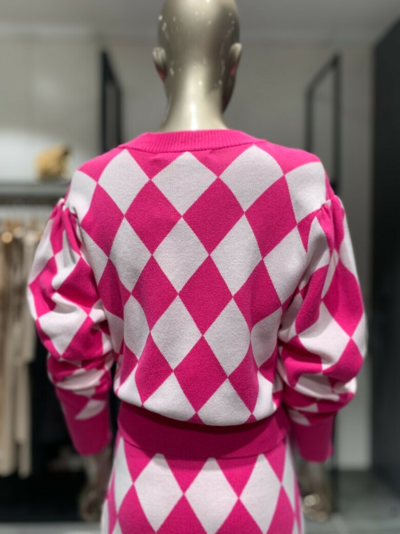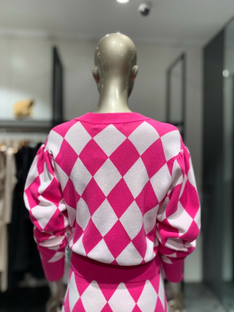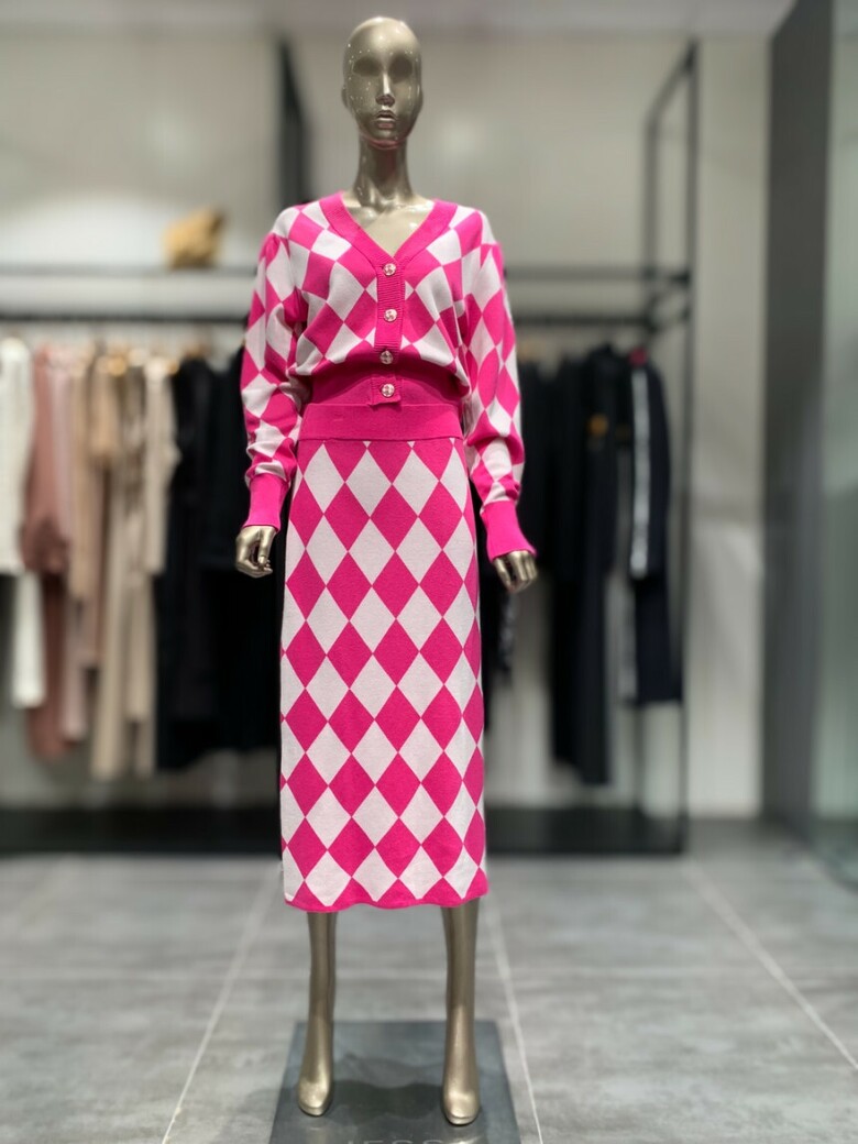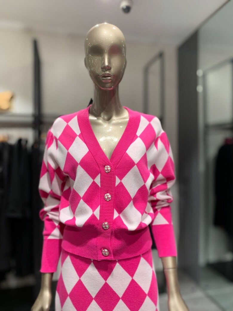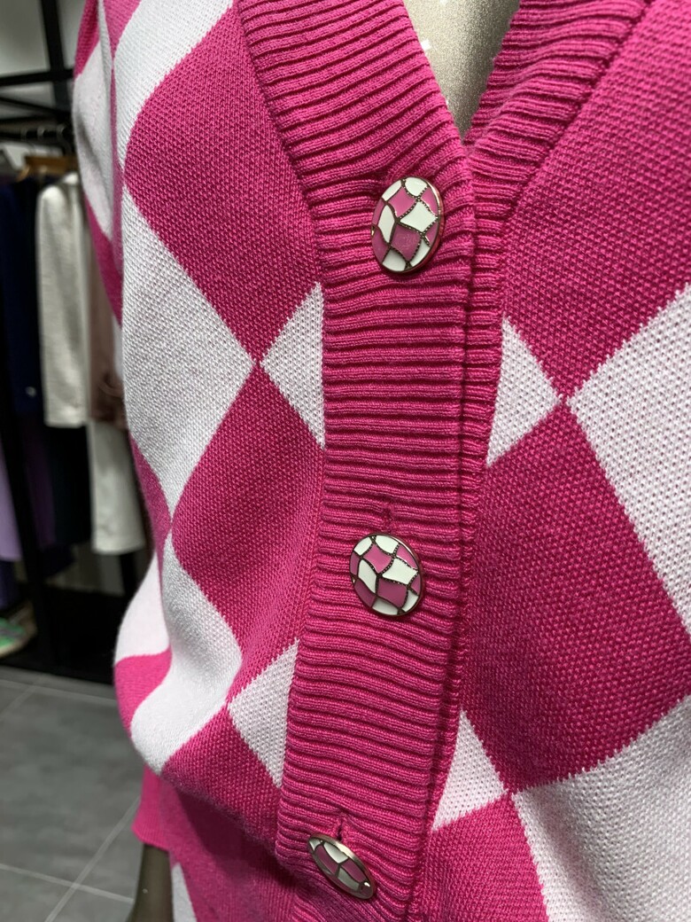 제시뉴욕 MD15NRKG5970 다이아 체크패턴니트카디건