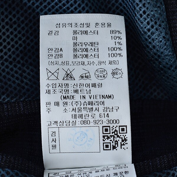 제품소재 : 폴리에스터89%마10%폴리우레탄1%