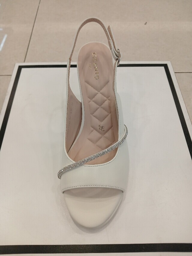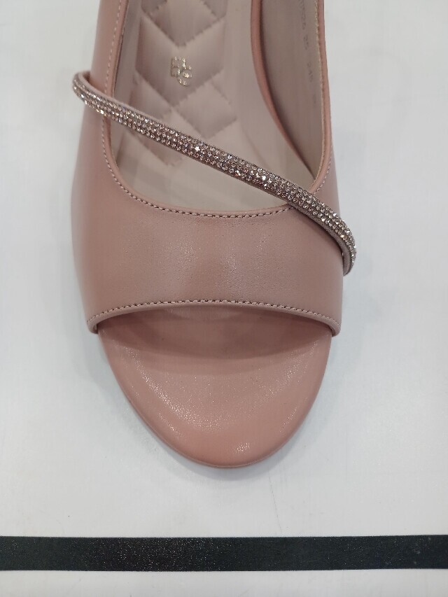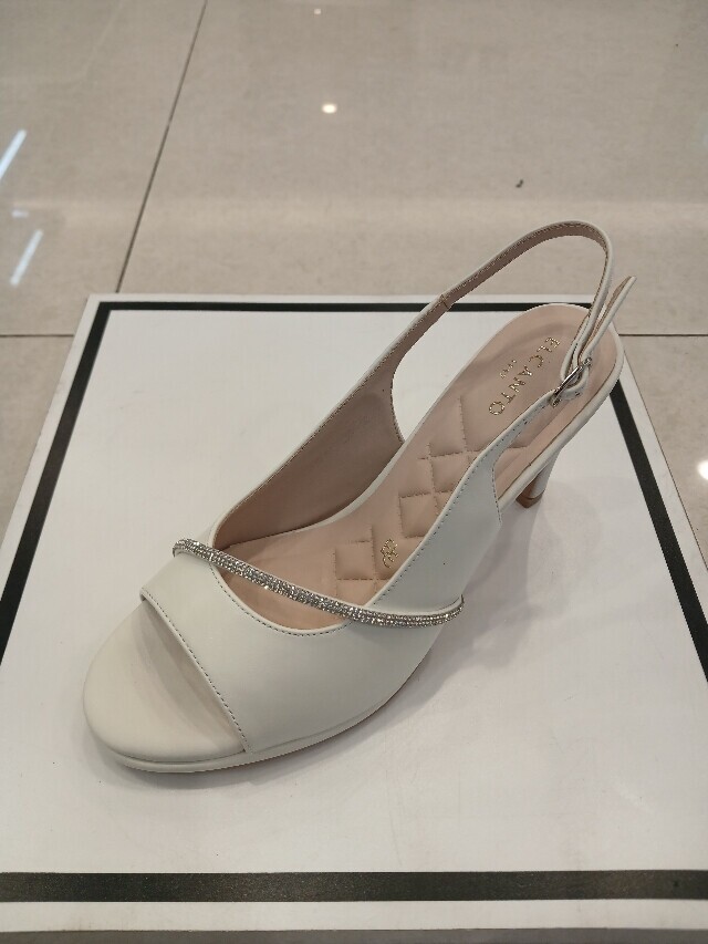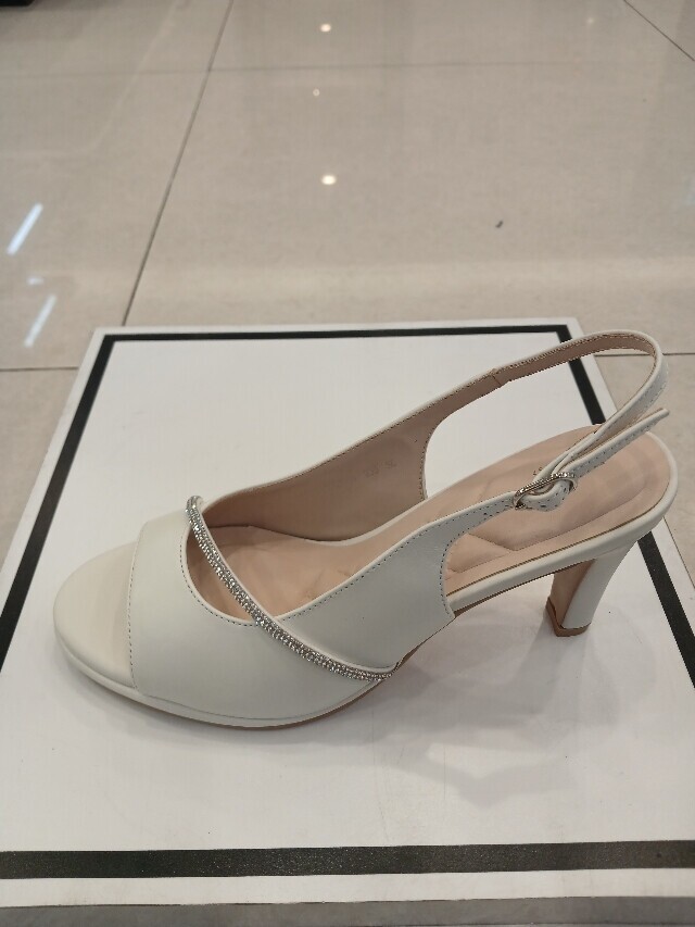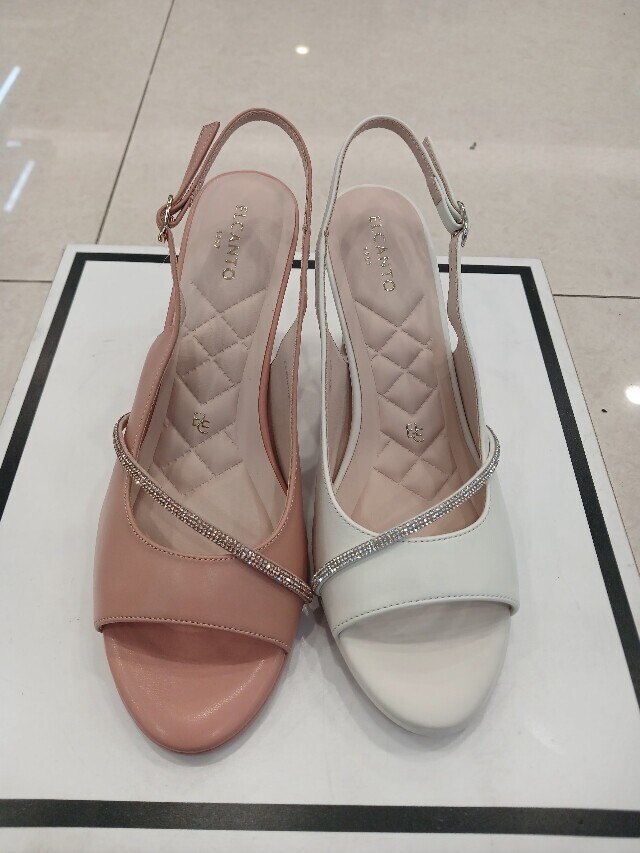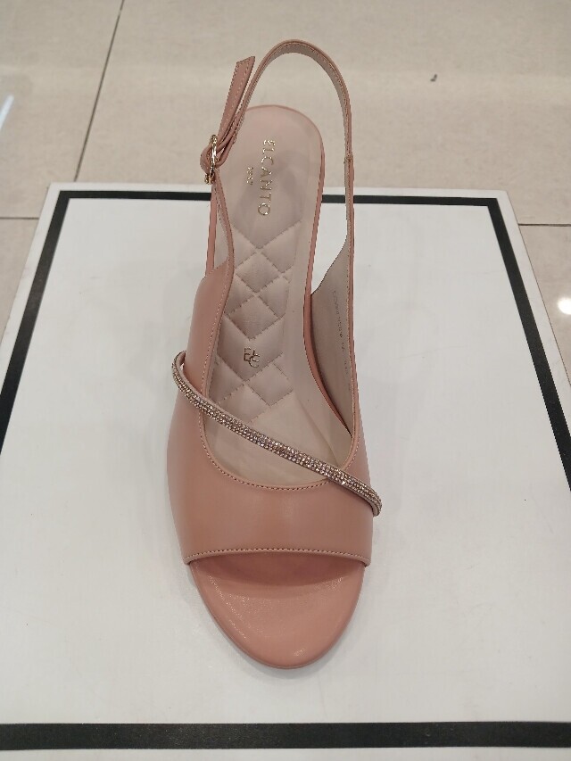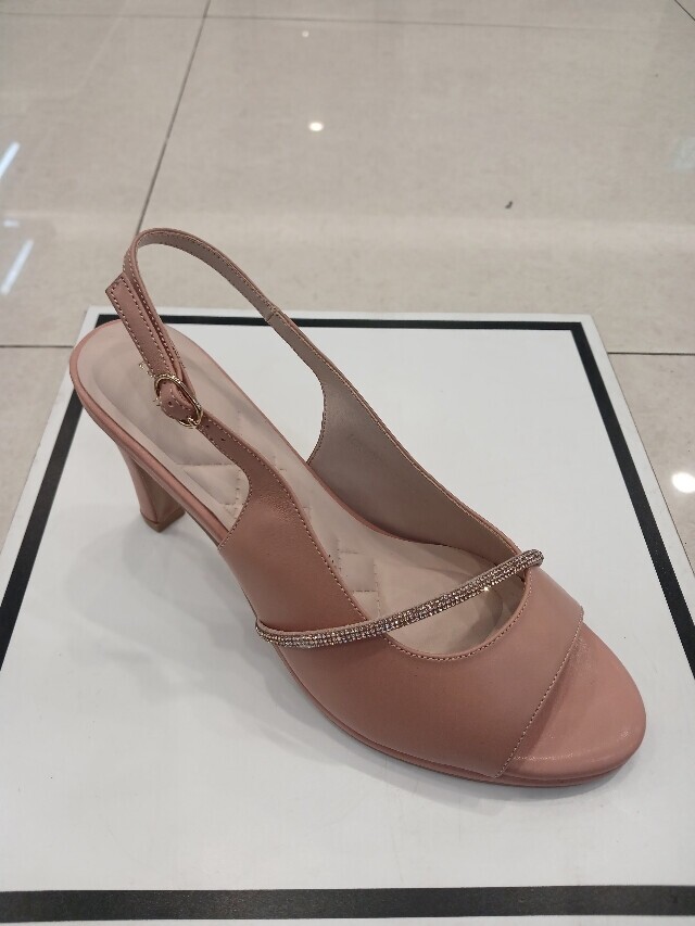 굽높이 약8cm의 높이에 천연양가죽 소재를 사용하여 제작된 여성 가보시 슬링백 샌들입니다