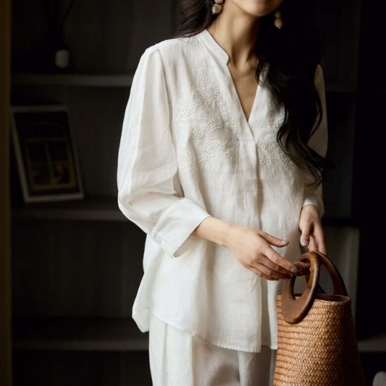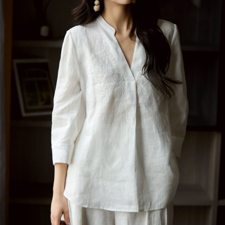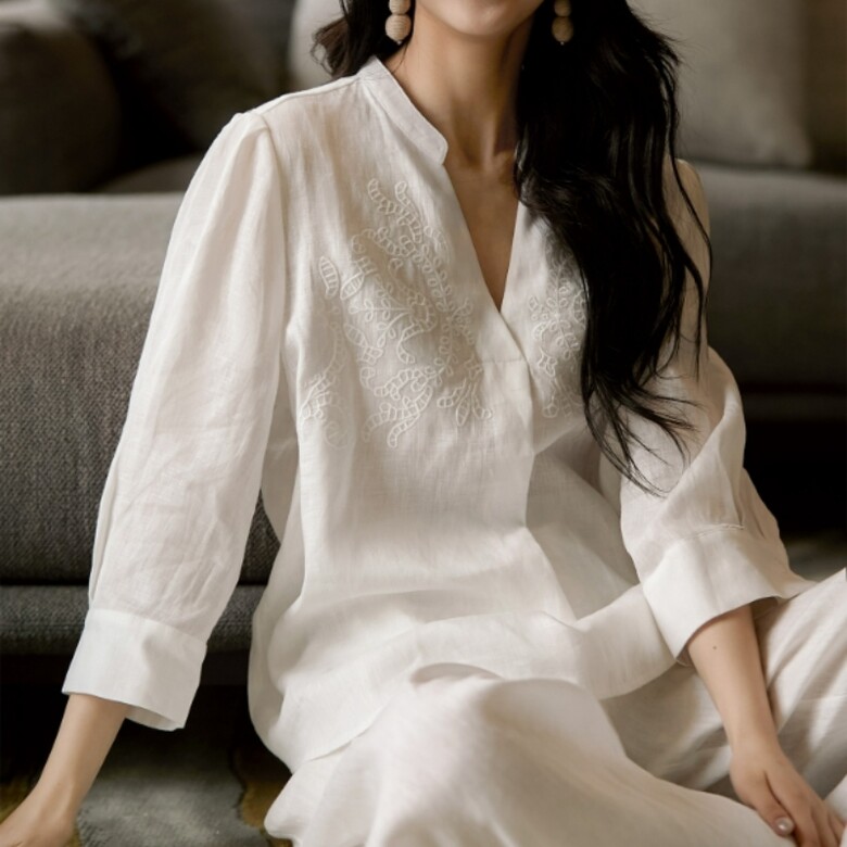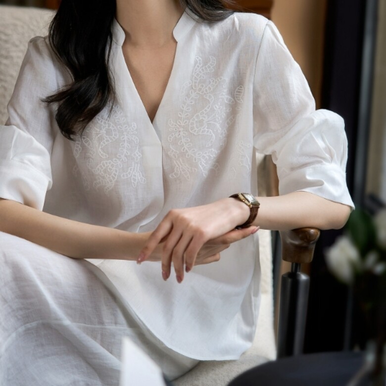 마일스 7부소매 린넨 블라우스_250420_SJ060