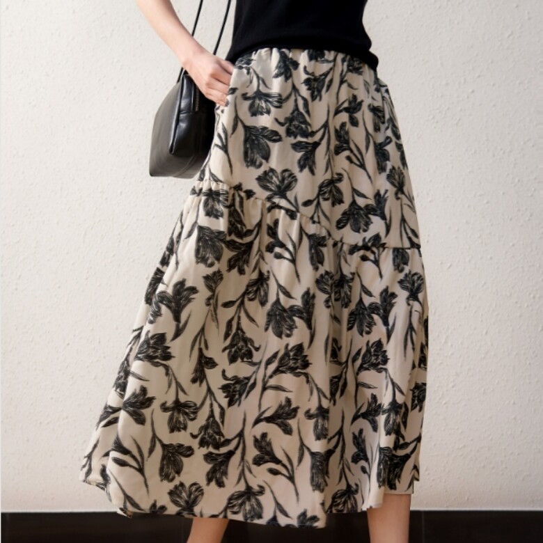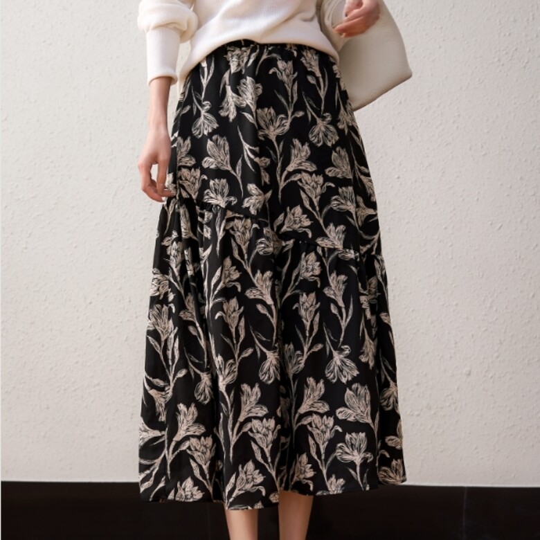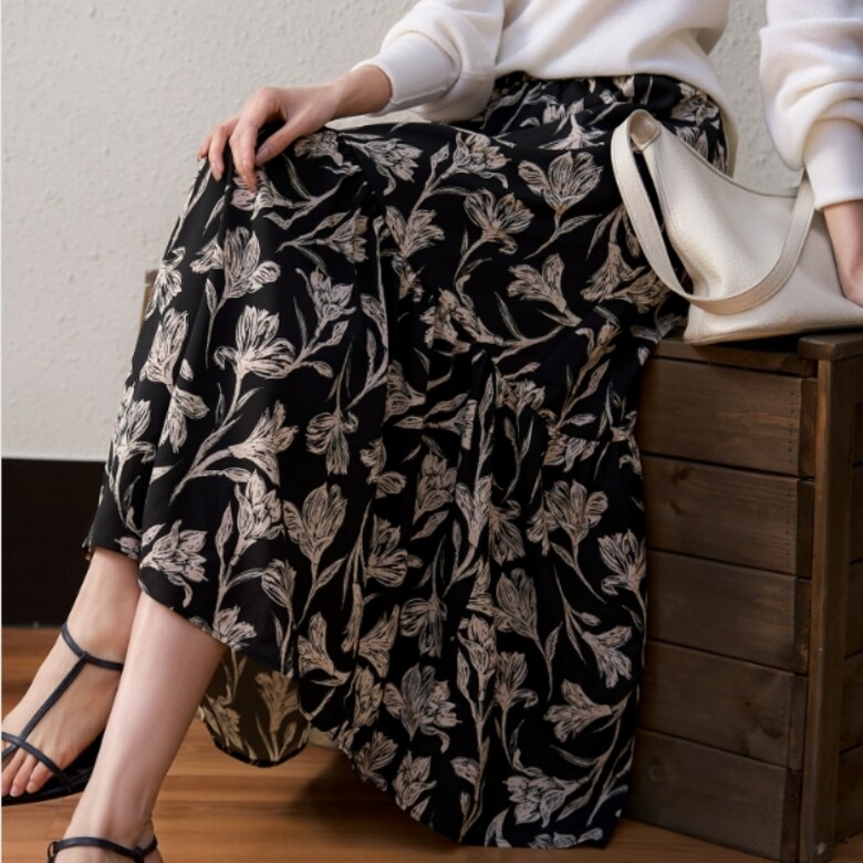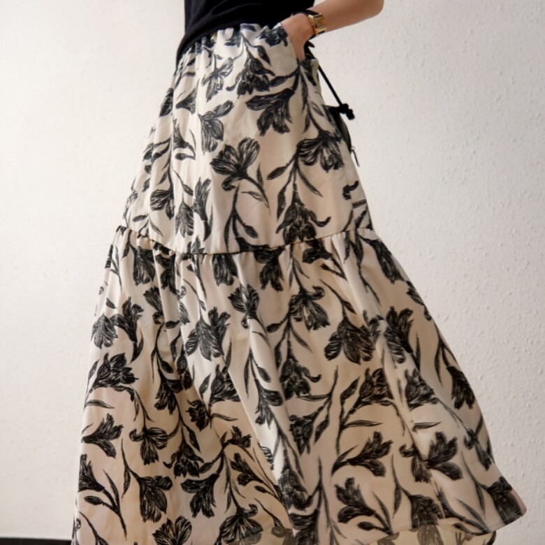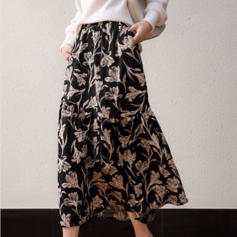 블랙 플로워 2COLOR 밴딩 스커트_250420_SJ210