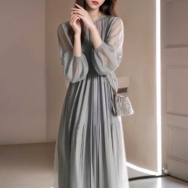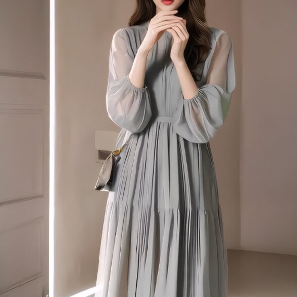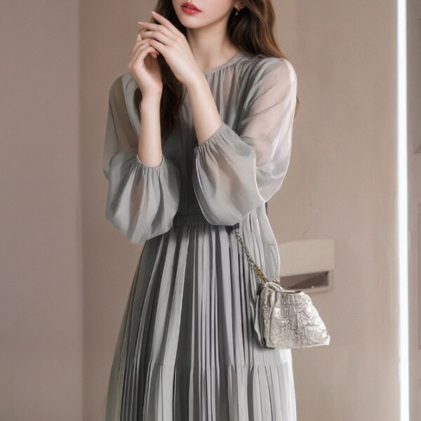 플리츠 퍼프 시스루 원피스_250420_SJ350