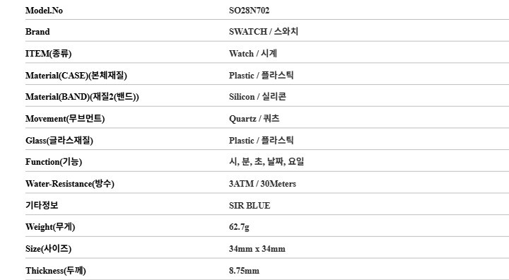 | 3. 제조사 | 스와치/MACHO-병행수입 |