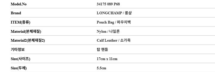| 5. 제조사 | 롱샴/MACHO-병행수입 |