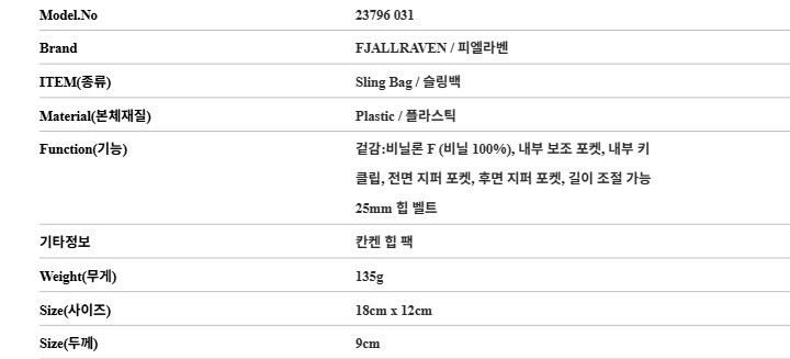 피엘라벤 23796 031 칸켄 힙 팩 슬링백