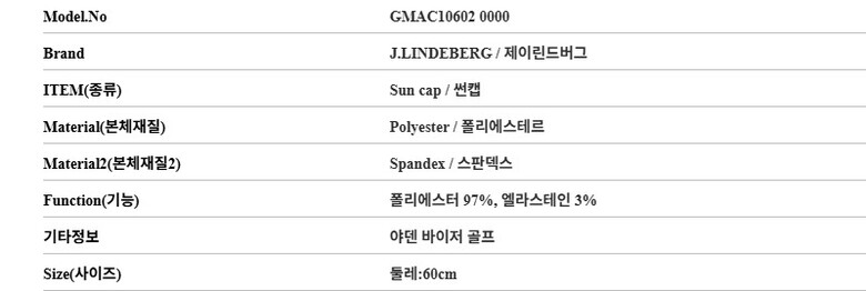 제이린드버그 GMAC10602 0000 야덴 바이저 골프 썬캡