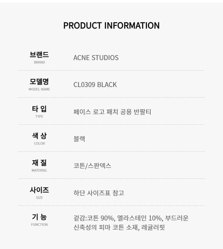 아크네스튜디오 CL0309 BLACK (900) 페이스 로고 패치 공용 반팔티